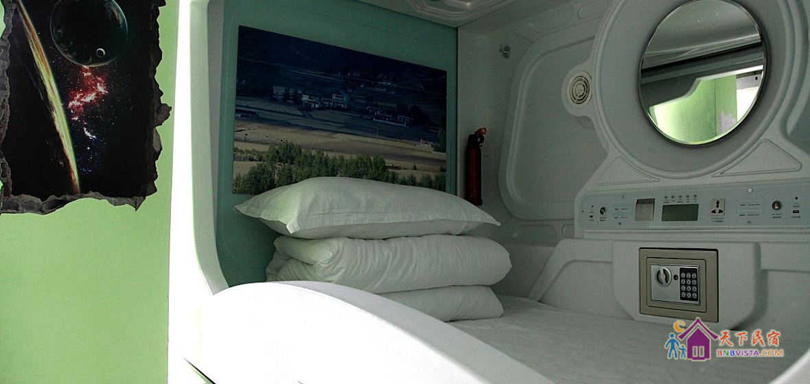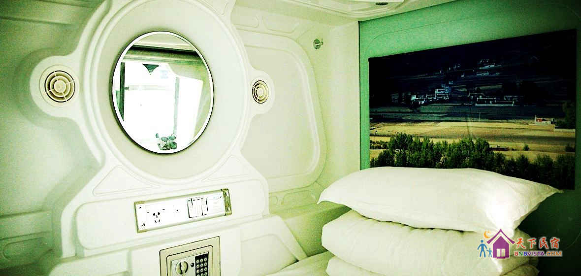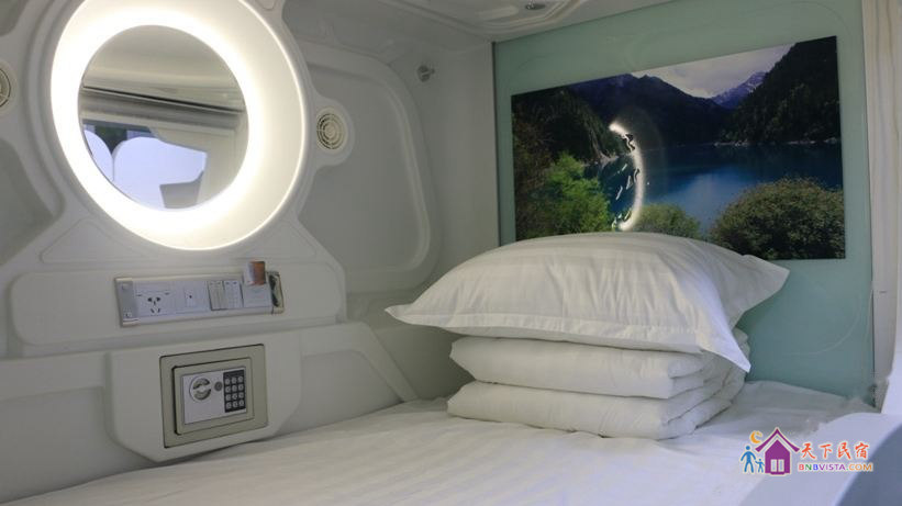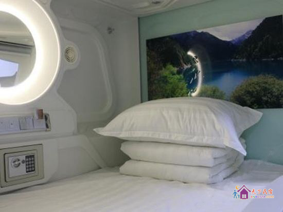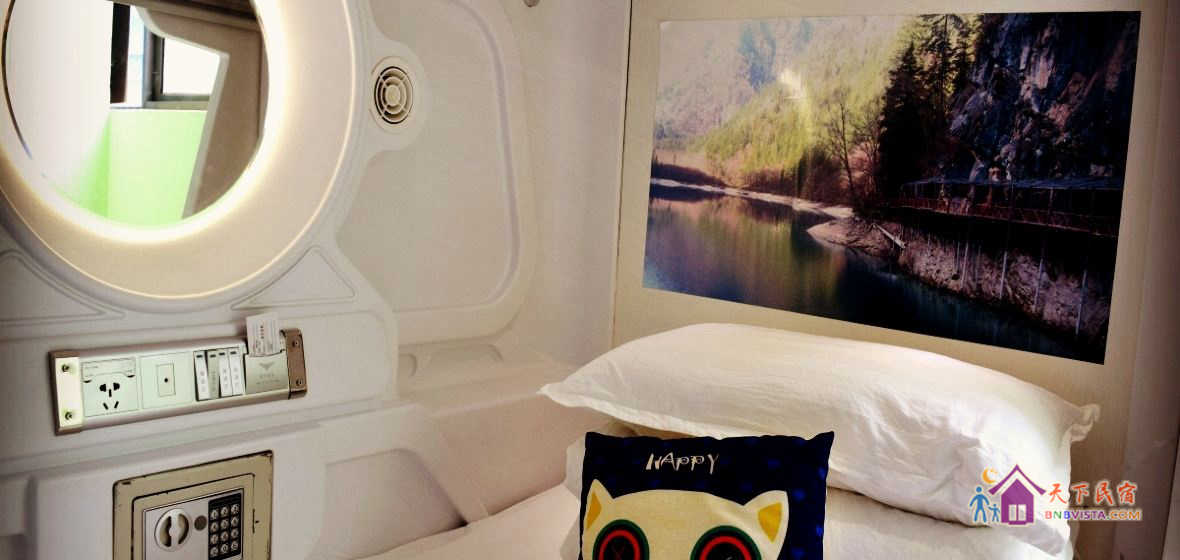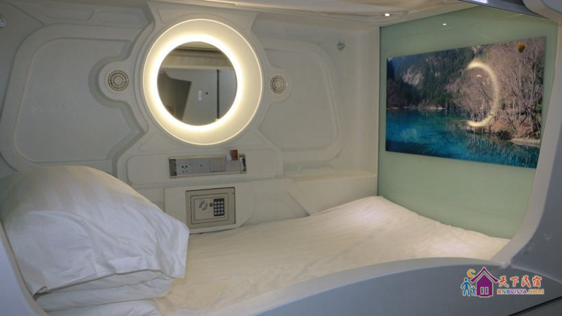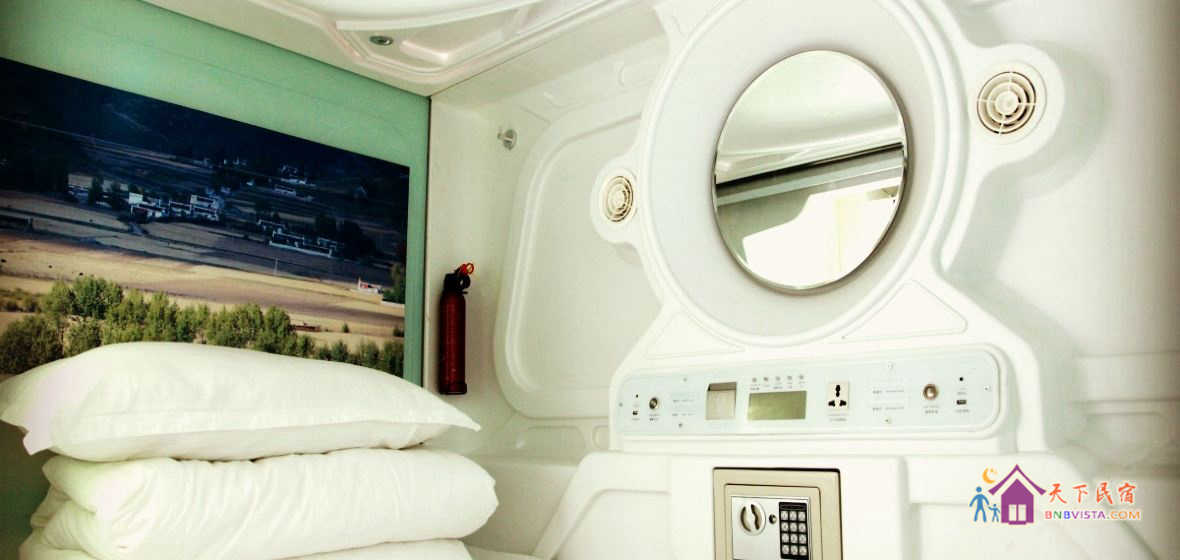 每个太空舱都是一个独立私密的空间,分时尚竖舱和豪华横舱,舱内配照明系统、负离子通风系统、保险柜、充电插座、USB接口、梳妆台,舒适的环境大大提高您的睡眠质量。公共区域监控全覆盖,保证您的安全。