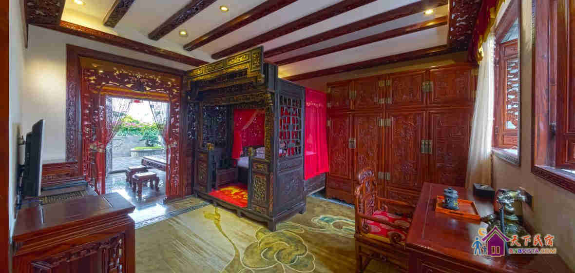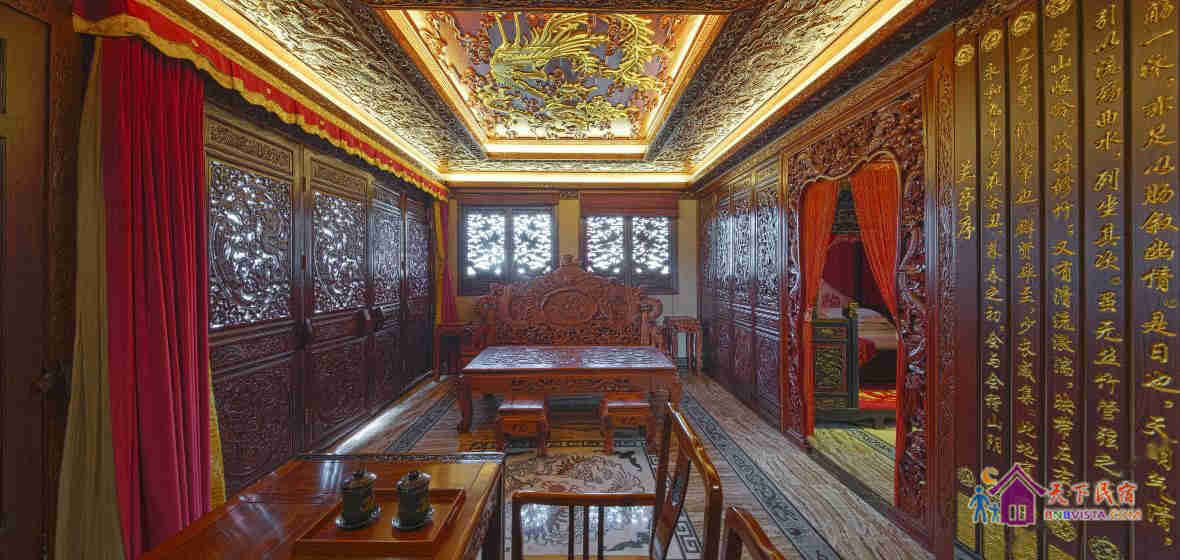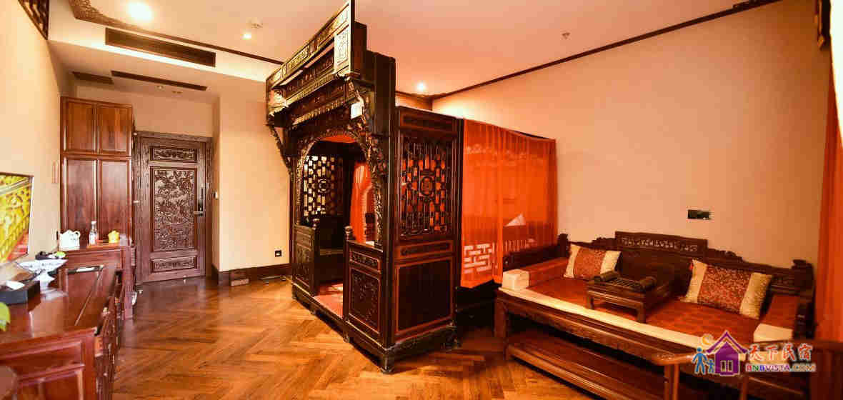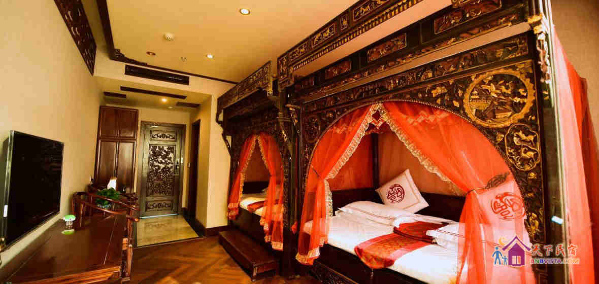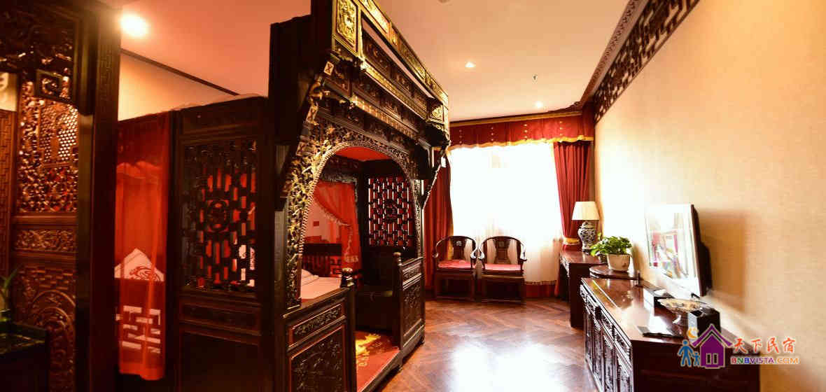 酒店最具特色的是内置做工精致,虽经历百年犹保存完好的清代初期、中期木雕床榻,及精工名贵的红木家具,人处其中,让您感受思古幽情与现代生活相结合的文化氛围。