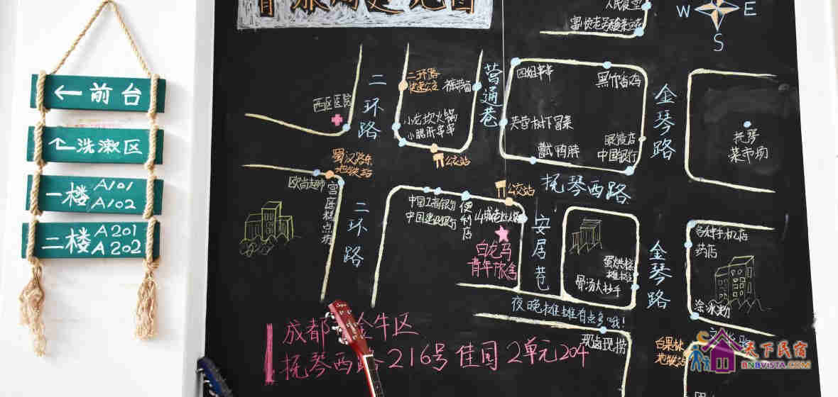 白龙马青年旅舍位于金牛区抚琴西路216佳园小区(安居巷内),位于二环内,毗邻蜀汉路东地铁站。不为旅行而旅行,白龙马致力于打造成都最具青旅气质的客栈。质优价廉的干净床位,超快的网络wifi信号全覆盖,以及超大的景观花园,搭配老成都韵味的竹椅,可以让你发呆一整天。