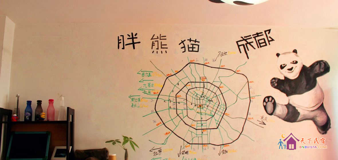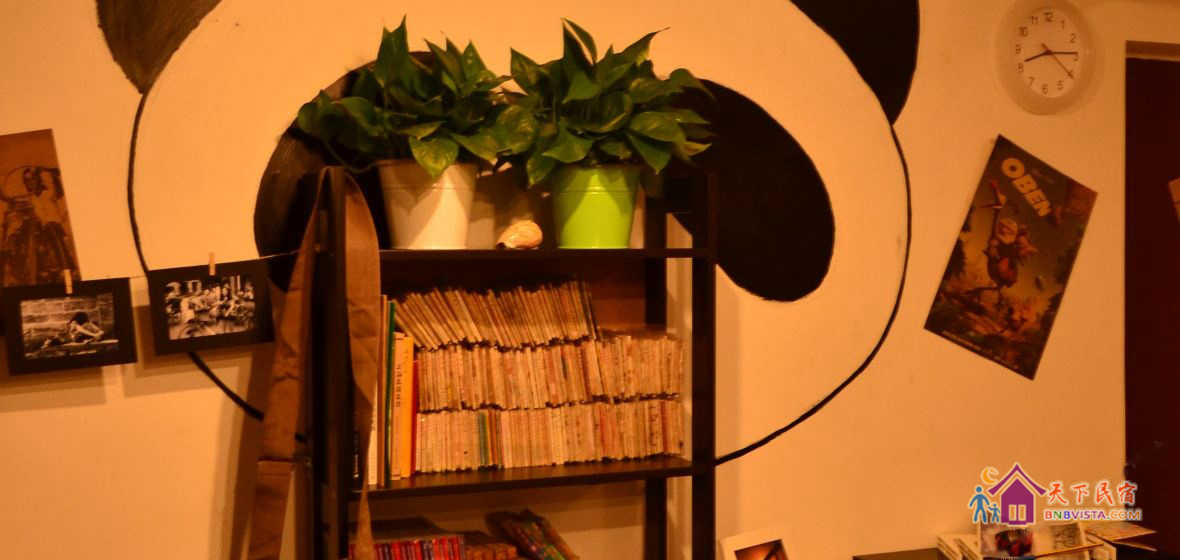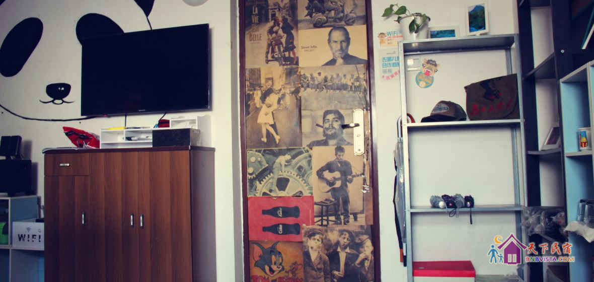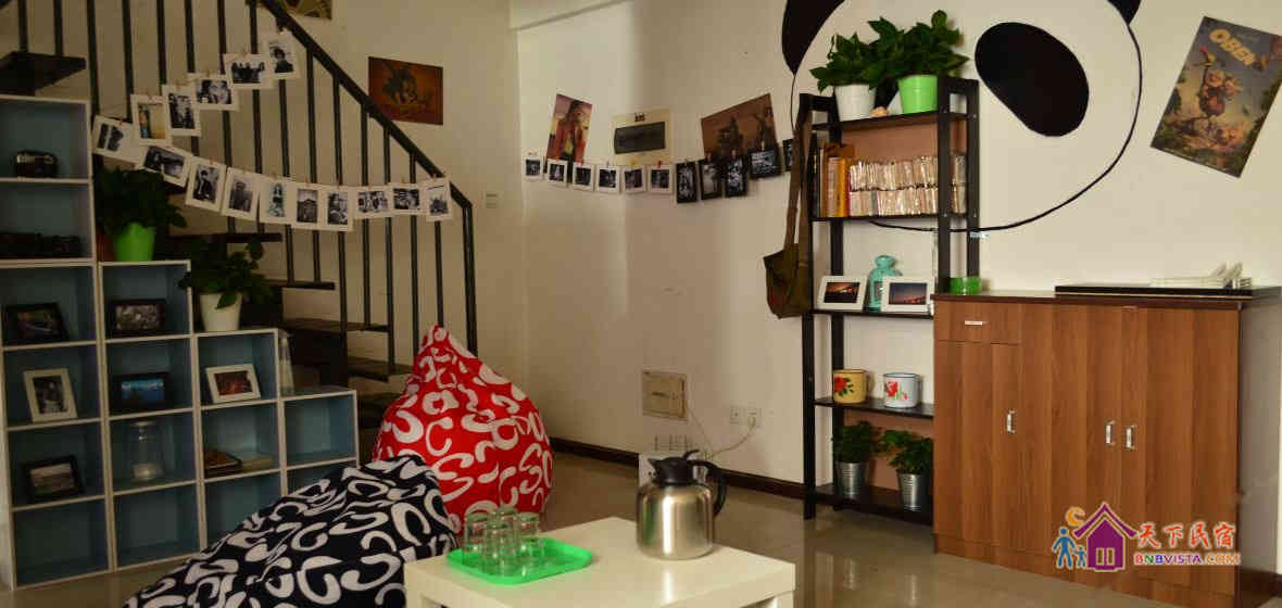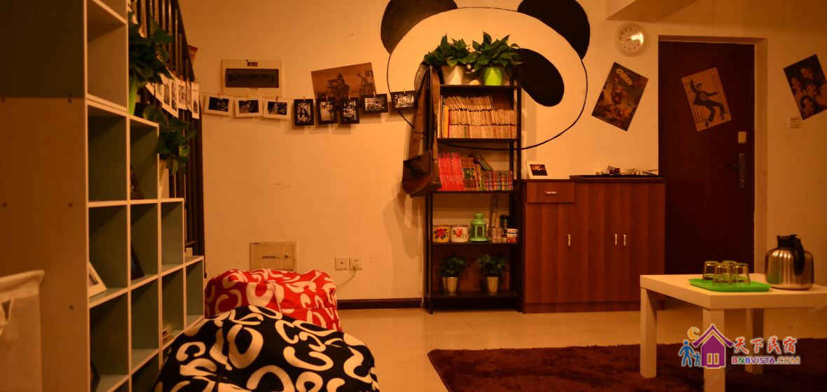 旅舍的客房整洁卫生,公共区域内有熊猫图案的可爱贴纸,环境轻松、活泼,为年轻人提供一个广交朋友、旅行落脚的好去处。