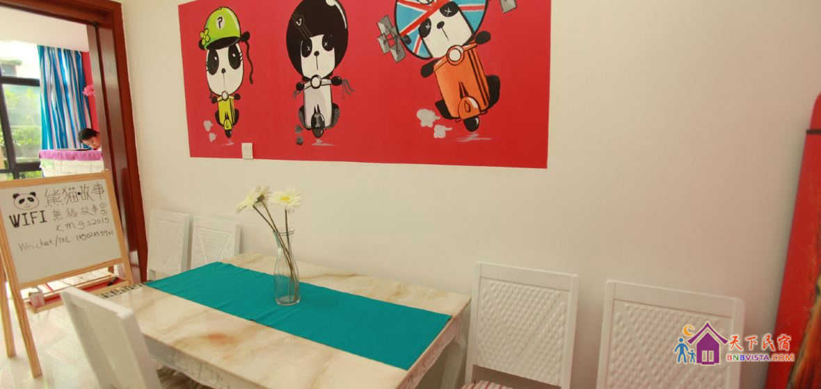 - 所有房型: 熊猫六人间(床位房),熊猫小姐六人间(按床位卖),熊猫八人间(床位房),熊猫小姐四人床位间,熊猫小姐四人间(按床位卖),熊猫公子八人间(按床位卖)