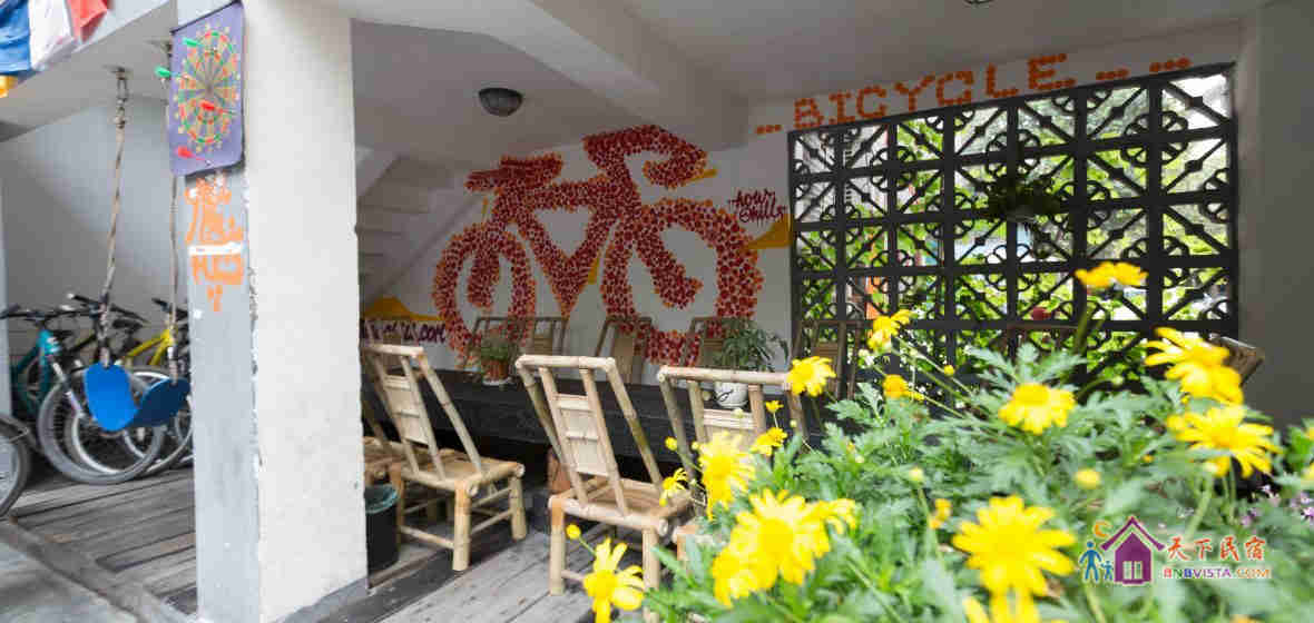 是一座4层的独栋楼房,环境舒适,配有各式风格的客房。客栈设有酒吧、书吧、桌游、露台、秋千、公共电脑,顶楼有投币洗衣机,天台有晾衣区,您也可以在公共厨房一展厨艺,还为您提供各种旅游咨询及订票服务。