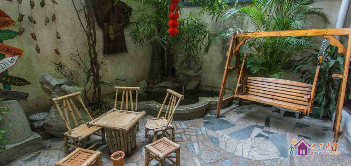 小院池塘,疏竹秋千,有颜色各异的主题客房,古朴清幽的大厅茶室,天台更有凉亭,花圃,景观别致,视野宽阔。