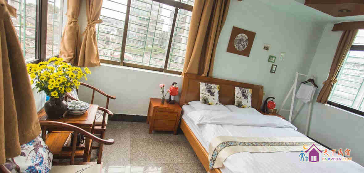 客栈由一座三层的独栋私家别墅改造而成,共有八个客房。外表朴实无华,里面别有洞天。