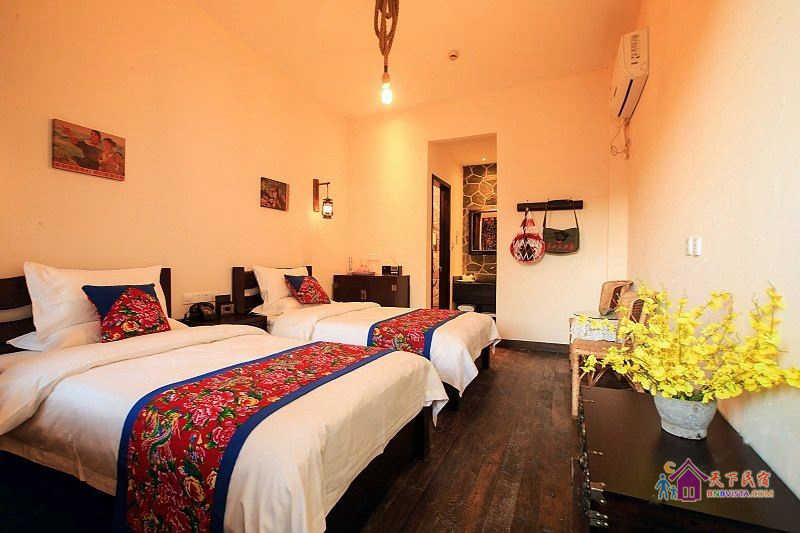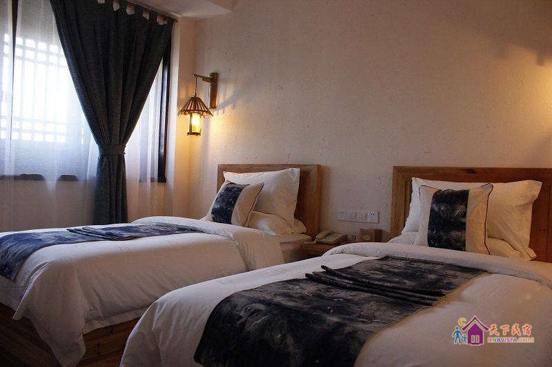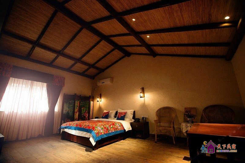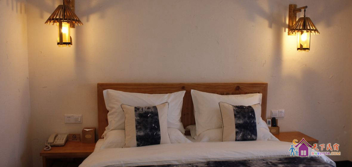 石供雅园客房设备以石头制品为主,墙角放置着小型的石臼和挂在墙上的壁画给整个空间增加了无限的复古之风,似乎可以回到那个特殊的石器年代。