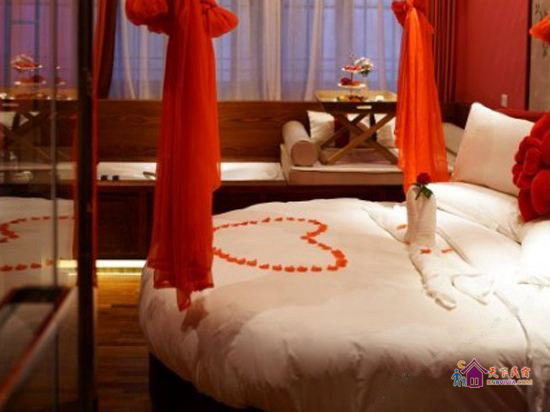 “虫二酒店”位于东方盐湖城道天下景区内,“虫二”取“風月无边”之意,虫二酒店是专为情侣打造的主题酒店。酒店共有27间客房,其中风情大床房11间,另特设有16间风情圆床房。整栋建筑中间是镂空的庭院,这样别致的设计一来可以增加客房与客房间的私密性,二来可以还原江南水乡高宅大院的特色。酒店整体还会加入一些古人使用的装饰,如屏风或刻花木柜等,让住客在充满浓厚历史气息的环境中充分享受二人世界。