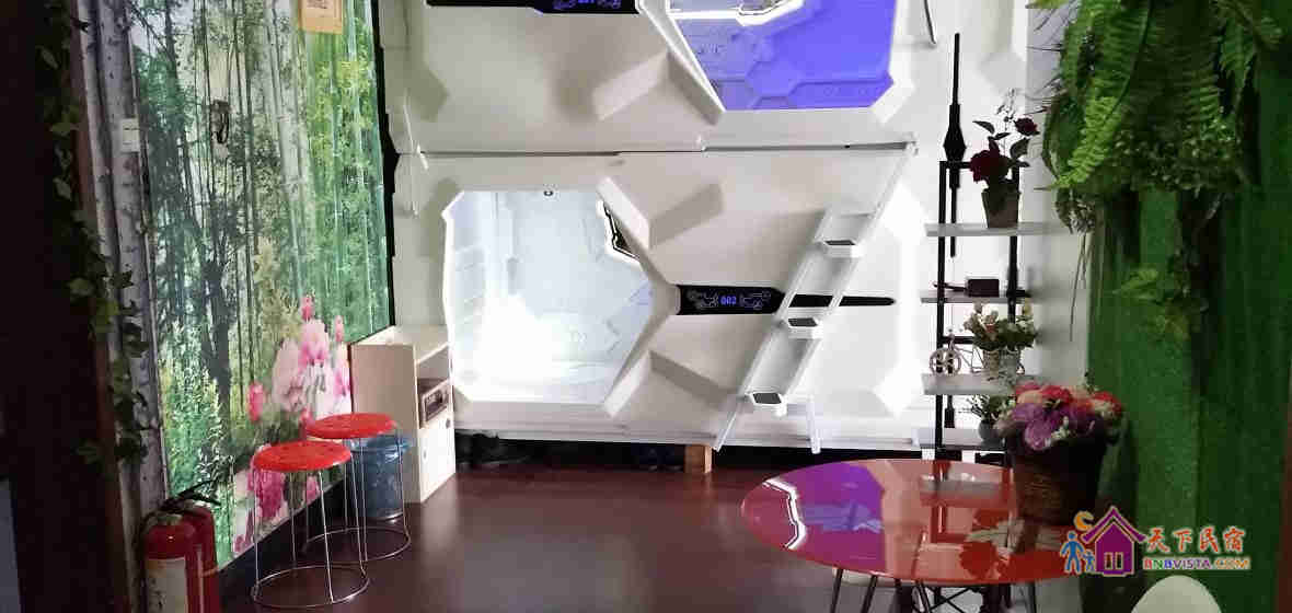 - 所有房型: 温馨六人间(床位房),豪华太空舱(床位房)(公共卫浴),温馨沙发床(床位房)(公共卫浴)