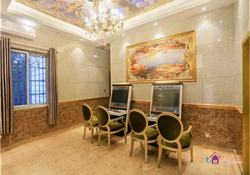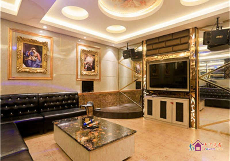装修风格采用了豪华精致风格,配备的功能设施强大,包含豪华KTV舞台、专业灯光音响设备、桌游、XBOX游戏机、桌球、自动麻将桌、桌上足球、无线上网、自助厨房、豪华餐厅和烧烤设备。