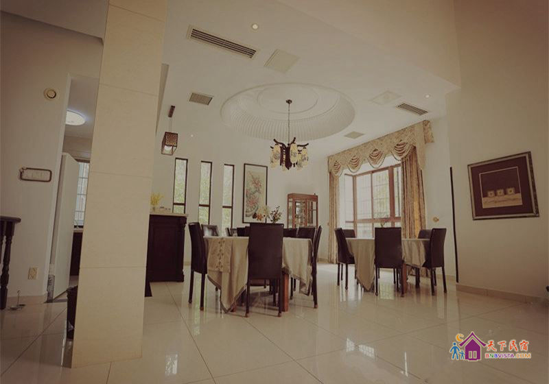 六百平生态江南园林独栋别墅,临水庭院,郁郁葱葱,鸟语花香,宛如一幅江南水墨画卷。新中式装修大气奢华,挑高落地窗,引入和煦日光、焕发一室盎然生机。别墅内休闲项目应有尽有,迷你高尔夫、台球桌游、KTV、浪漫小酒吧、书吧、原声碟片、超大投影仪、XBOX体感游戏机、麻将桌多种项目任你选择;有玩累了随时倒头休息的舒适大床。充分营造符合现代生活方式的舒适感。这里不仅是休闲娱乐度假场所,更是一座绿色氧吧!