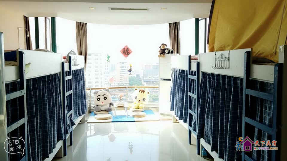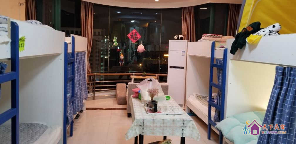 - 所有房型: 男生八人床位房,舒适男生二人间床位房,蓝色情调,温馨女生六人间(床位),绿色情调浪漫双人阳光榻榻米房,景观弧形落地窗男女混合上下铺,迷彩双人帐篷房
