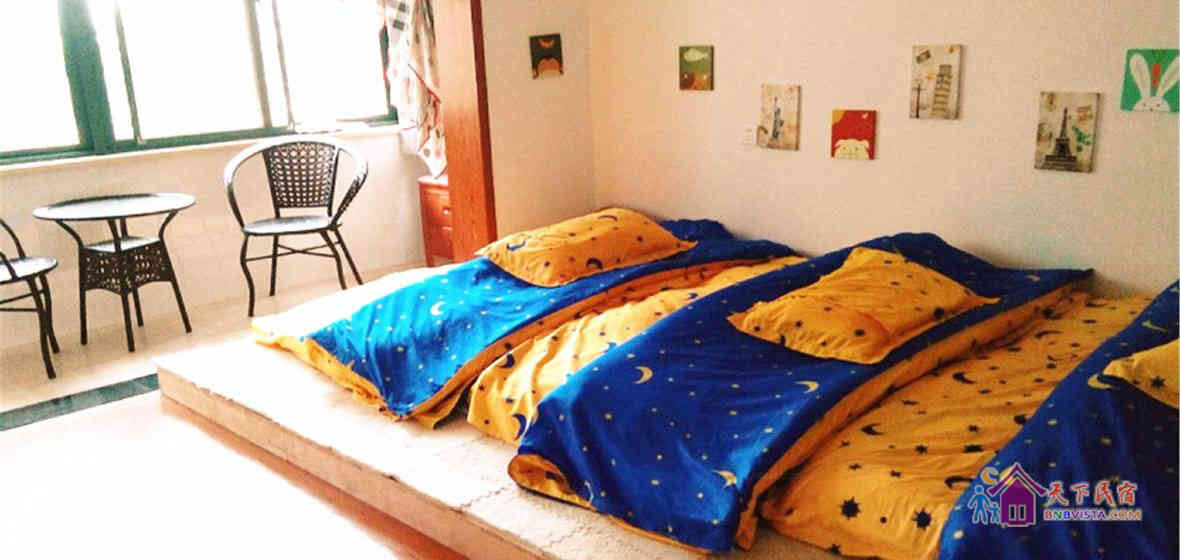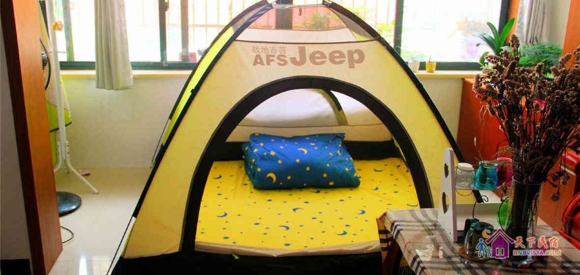 - 所有房型: 大床房,温馨榻榻米情侣间,女生榻榻米三人床位间,男生四人间(床位房),双人帐篷房