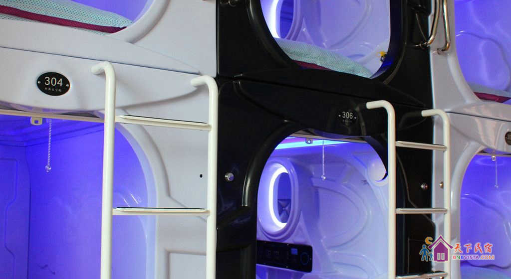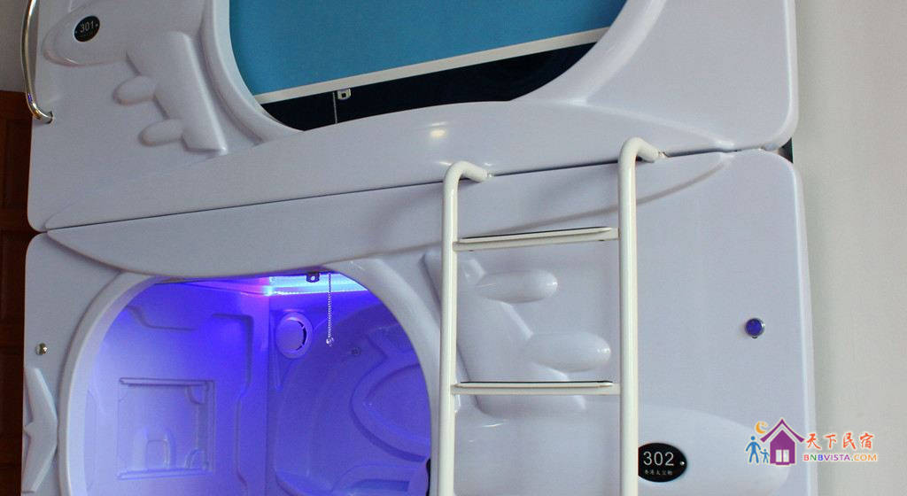 小清新装饰风格空间里,有多种太空舱房供选择。房间里收拾得妥帖整洁,配设也很齐全。公共区域里有24小时热水淋浴、高速无线网络等设施,给你家一般的舒适感。