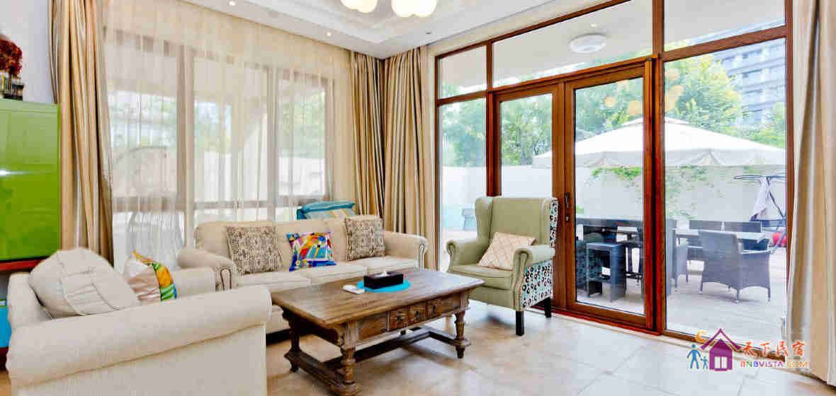 这套房子在阿那亚具有绝无仅有的独特性,是开发商当年用心所做的甄选样板间。位置相当优越,在小别墅的第一排,紧邻大海和CLUBMED,也是唯一一座小院门面朝大海的诗意居所。出门50米便是置业中心,穿过置业中心即是无边泳池和美丽的阿那亚海岸线。院子很大,不夸张地说比其他别墅大一倍,院里有吧台、秋千、荷花池……适合宝贝们嬉戏玩耍。房间内的布置也极其用心,因主人是资深媒体人,对家具、物件、生活用品、甚至装饰画都有自己独到的品味和要求,当年侍弄这套房子也是用了将近半年的时间,从世界各地淘来各种家居用品和小摆件,非常具有生活情趣。书架上的书也是主人精心挑选,相信总有一本可以陪伴你在海边发呆、冥想……窝在二楼露台的藤椅里,便可听涛看海; 不出小院,便可满足你一切关于“诗和远方”的想象。就像《云花开》中唱的:云花开,捎来精彩,伏笔止留白,放空至物外,就会自然自得自在,自然自得自在。。。
