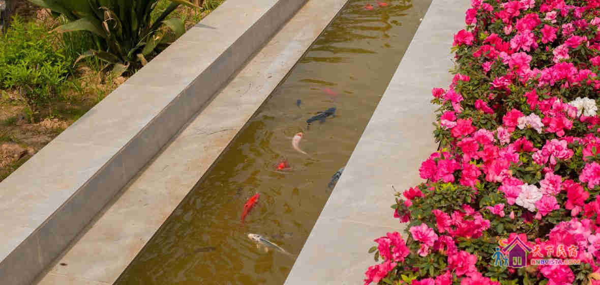 一条长长的沟渠将须度的庭院与花园划分开来,水沟里游动着几十尾各式各样的鱼,跨过一道拱桥可以去到花园。一家人如果想要亲子互动,还有更好的去处,须度有两个小小的温泉泡池,戏水,赏月,聊天,都是非常不错。