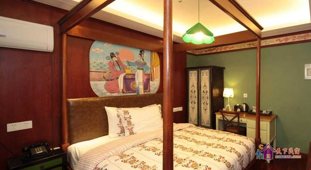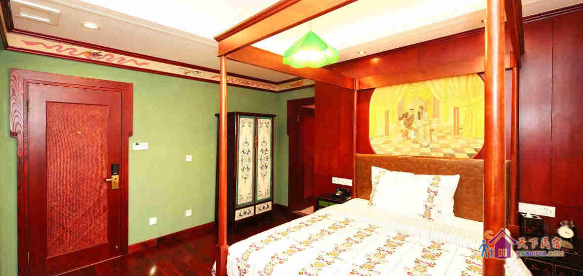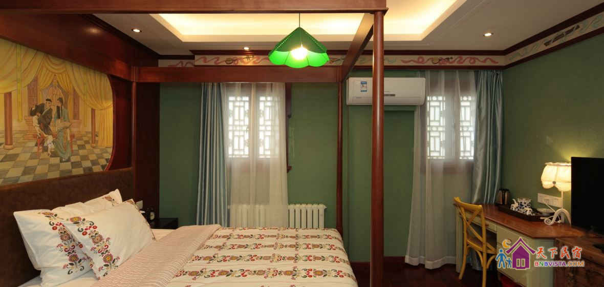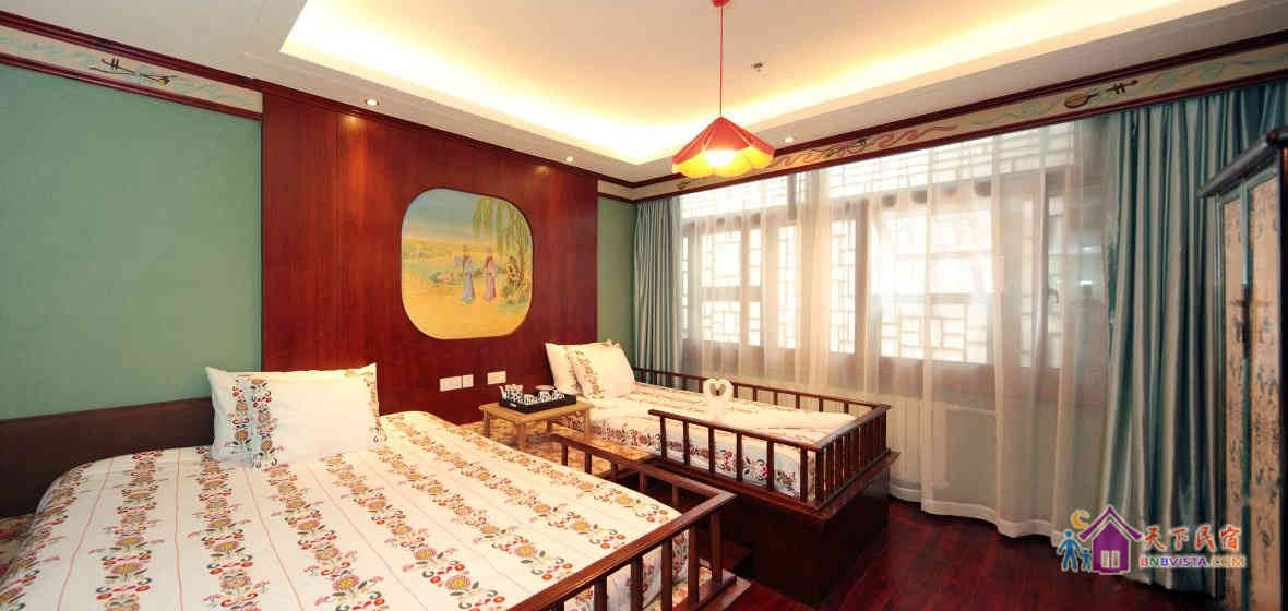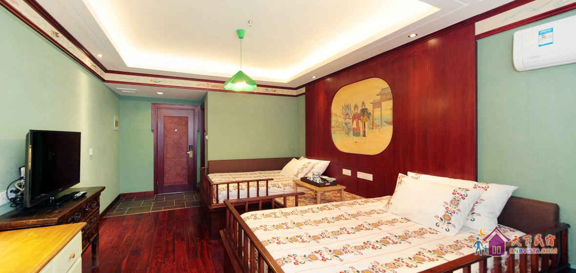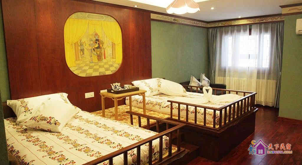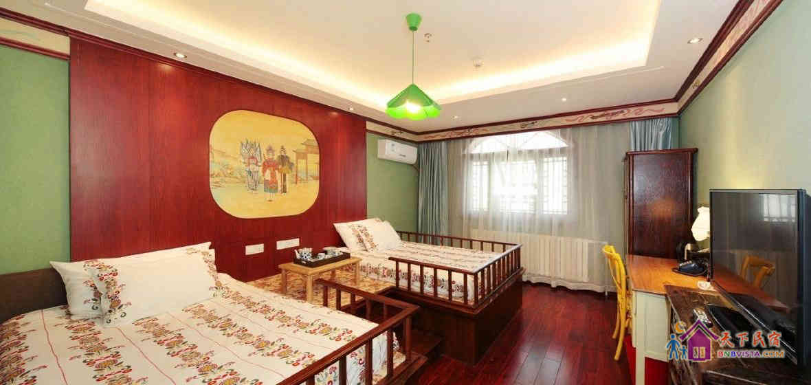 梨园客栈是一家以京剧故事为背景装饰的主题客栈。客栈的每一个房间都是一段折子戏,每一面墙壁都是一曲扣人心弦的西皮二黄。房东是来自山西太原的一对夫妻,夫妇俩除了做一手好吃的山西特色菜,还是戏曲票友,闲暇时听他们唱上一段,身心舒畅。