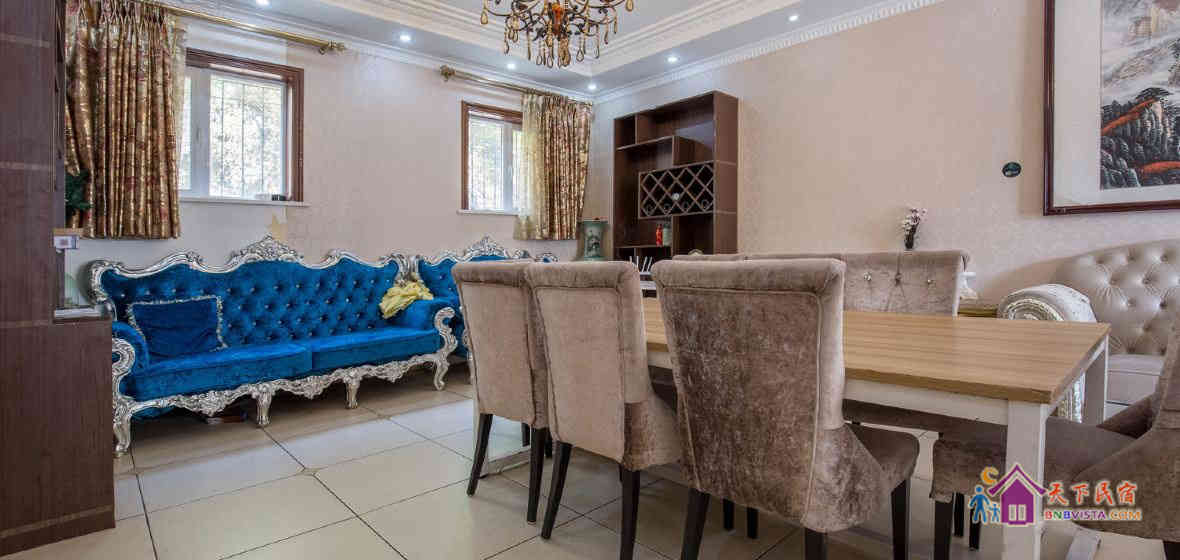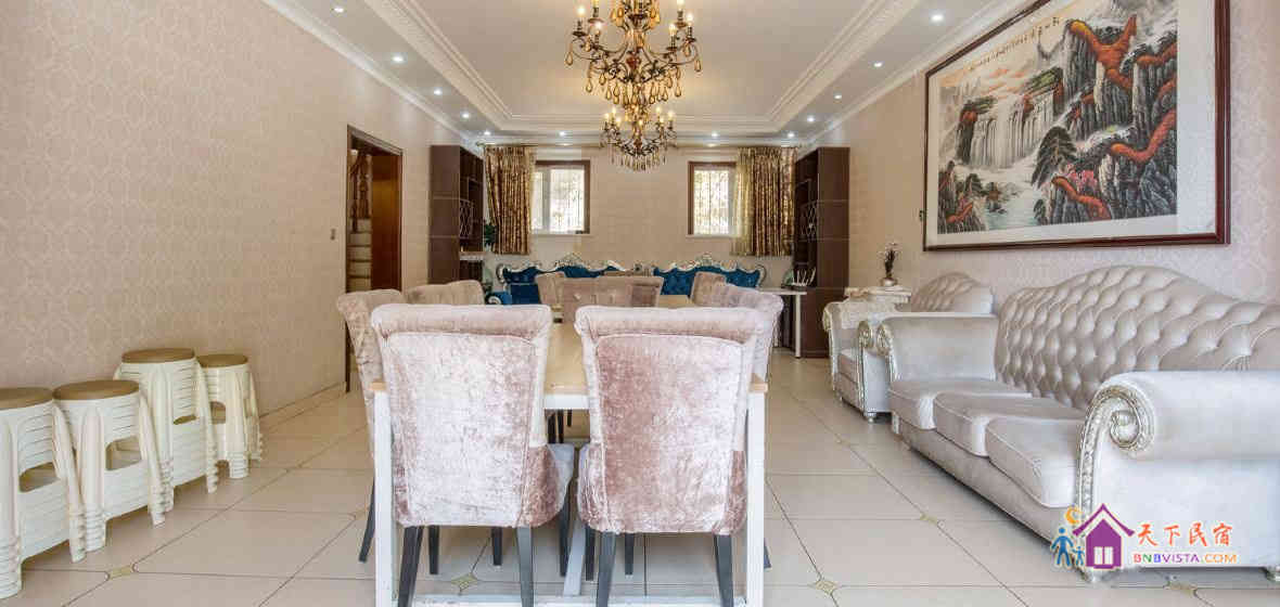 600平接待面积,全5层,8居3厅5卫,带100平独立庭院,环境优美场地宽阔,装修典雅奢华,水晶吊灯,飘窗阳台,满满的电视剧视角。别墅座落在风景区内,有风景优美的景区,人工湖,观景公园,大片苹果园,高尔夫球场,各种采摘园,农业嘉年华,垂钓园,军都山滑雪场,京密引水渠。周边有超市,菜市场等生活配套设施完善。