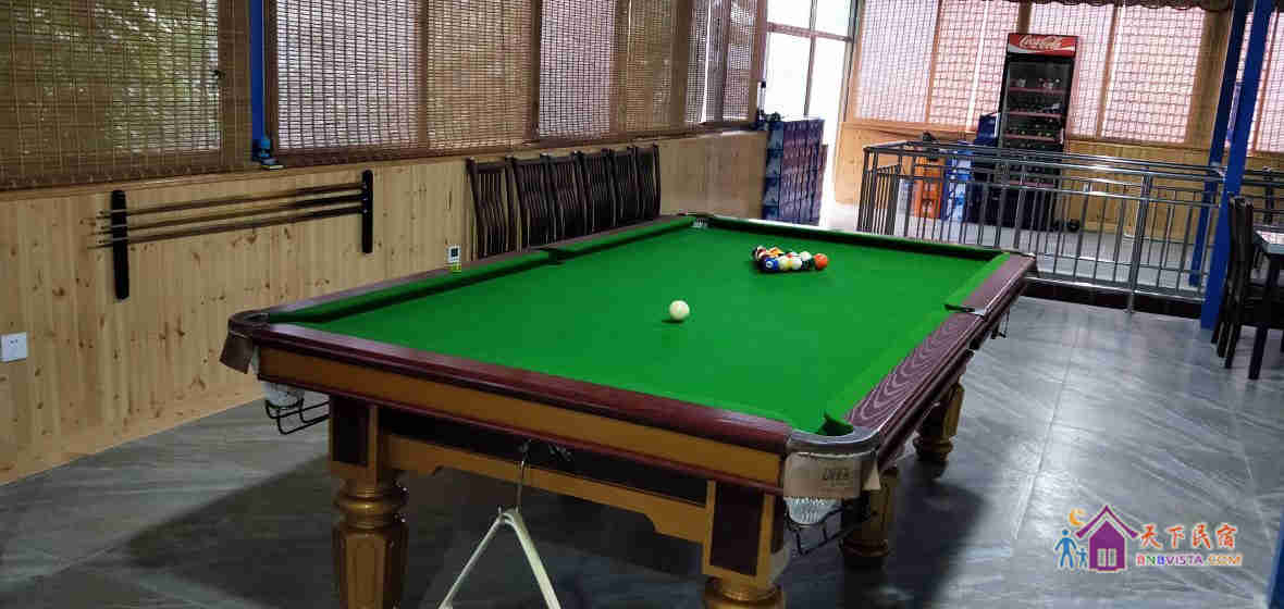 这里还有专业的台球桌、麻将室,设有单独的桌游区域,为桌游爱好者提供专业的狼人杀,阿瓦隆纸牌和灯光道具。餐厅支持自带烧烤,并免费提供烧烤设备。