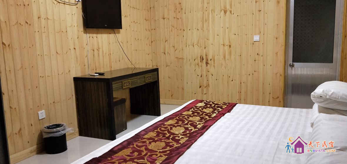 民俗客房干净整洁,提供洗漱用品,无线wifi全覆盖。2层设有餐厅及各种娱乐设施,100寸幕布+专业投影仪为您直播精彩的足球、篮球、电竞等各大赛事。