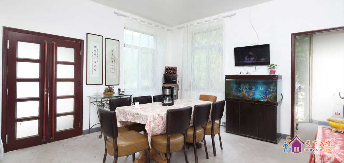 西式二层建筑,一楼42平的大厅,可聚会可品茶,超大的中岛式灶台掂炒烹炸可以尽情的发挥厨艺,餐厅可容纳多人的就餐。可以在二楼的影视厅观赏大屏幕的大片。卧室有日式榻榻米,双人标间和套间。当第一缕阳光洒进房间的时候,躺在舒适的大床上就可以欣赏窗外的山景。夜晚,在院子里抬头仰望,恍惚又回到了儿时,满天的繁星闪烁,运气好的时候流星会在头顶划过……