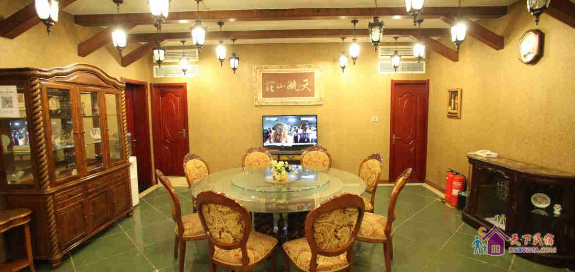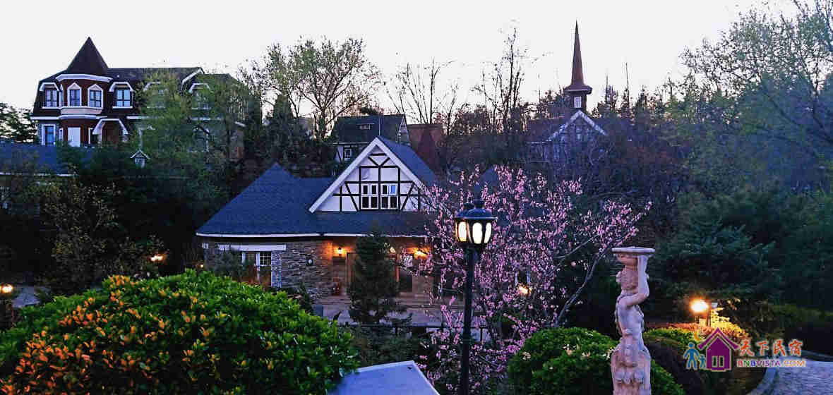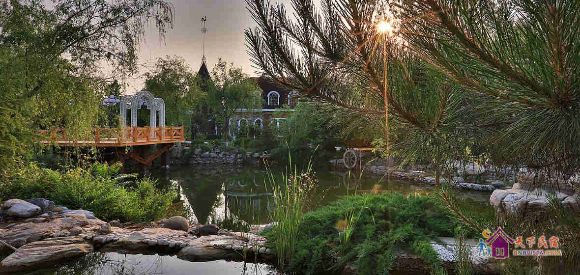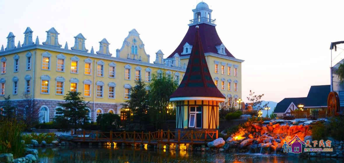 天毓山庄坐落于北京房山区周口店镇辛庄村,是集餐饮、住宿、娱乐、运动、健身为一体的大型休闲、度假的乡村式酒店。山庄最吸引人们眼球的是天毓山庄·柏林郡,它是依山势建造,以具有北欧风格、外形各具特色的各式别墅组成的园林庭院。将一个地道的德国小镇完整的呈现在人们眼前,园内的喷泉、水池、鱼塘、瀑布、小溪、杏树、竹林、广场、无不精巧、别致;室内的装饰、装潢大到家居用具,小到酒柜的摆件、油画,均让人实现了身临其境在北欧乡村别墅的感觉。宁静中不时传来鸟语虫鸣、鸡啼犬吠,身处山林云中信手可摘山中野果,真正的体验到拥抱大自然,享受大自然!