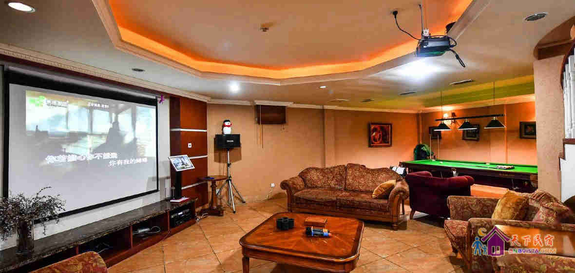 配备了豪华KTV,正规花式桌球,高档电动麻将机,XBOX体感游戏机,棋牌,桌游。DIY超大厨房,烧烤露台,餐具。
