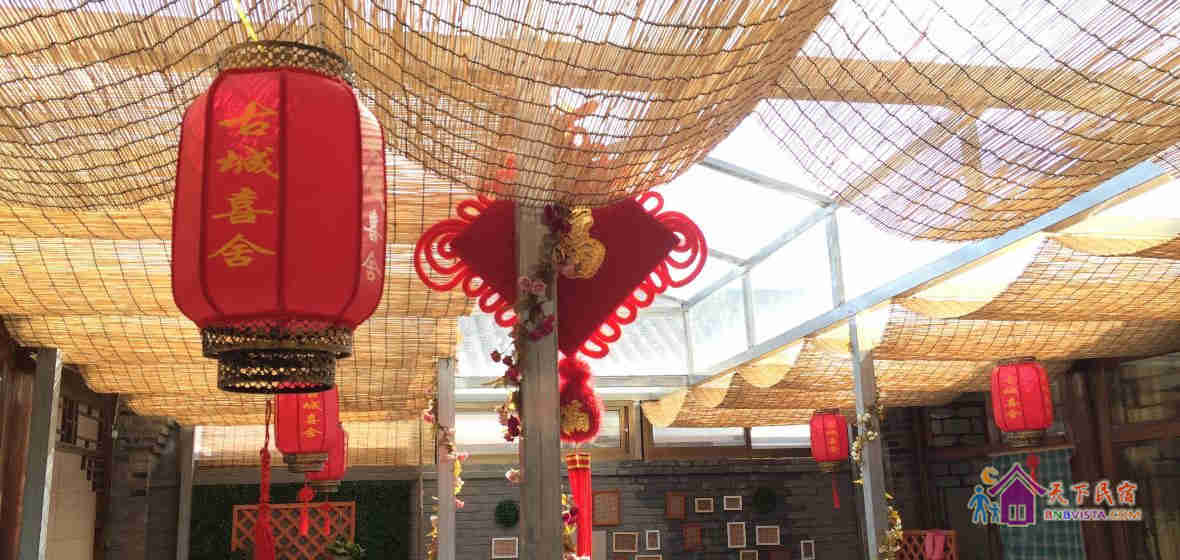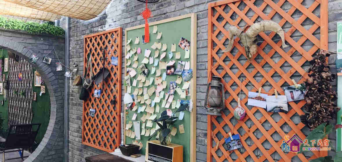 北京八达岭古城喜舍客栈——是一家超有艺术范儿的民宿。座落于八达岭长城脚下,距离八达岭长城步行仅10分钟,步行到八达岭火车站仅8分钟,距离八达岭野生动物园仅800米。客栈保留了鲜明的地方民宿特色,以及明代建筑风格。周边环境闲静舒适,优美整洁。房间设备齐全,配有独立卫生间和淋浴设备,空调,电视,热水壶,wifi等。院落设计艺术范儿,房间设计传统文化氛围浓厚。