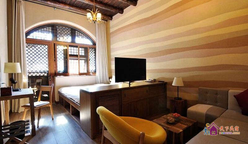 房内部装修风格多样,内部装饰点缀的亮黄色给人温暖温馨的感觉。外观古朴低调,土黄色斑驳的墙面给人一种年代久远,历经沧桑的时代感。要想当年,仿佛看到了士兵们“林暗草惊风,将军夜引弓”紧张的军旅生活。