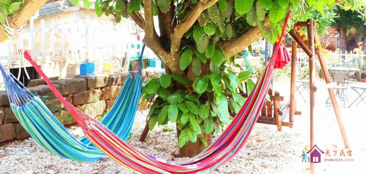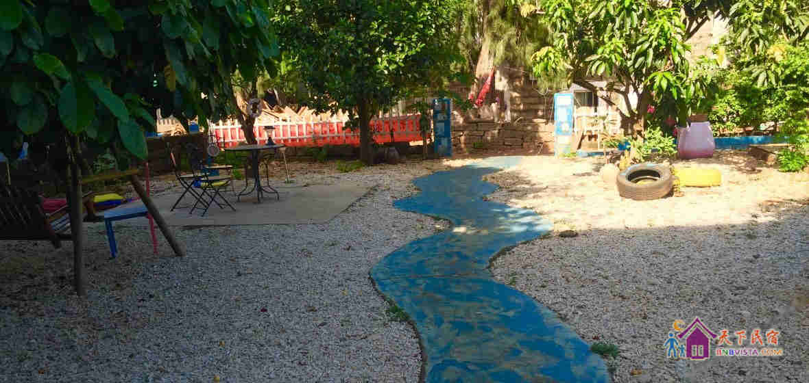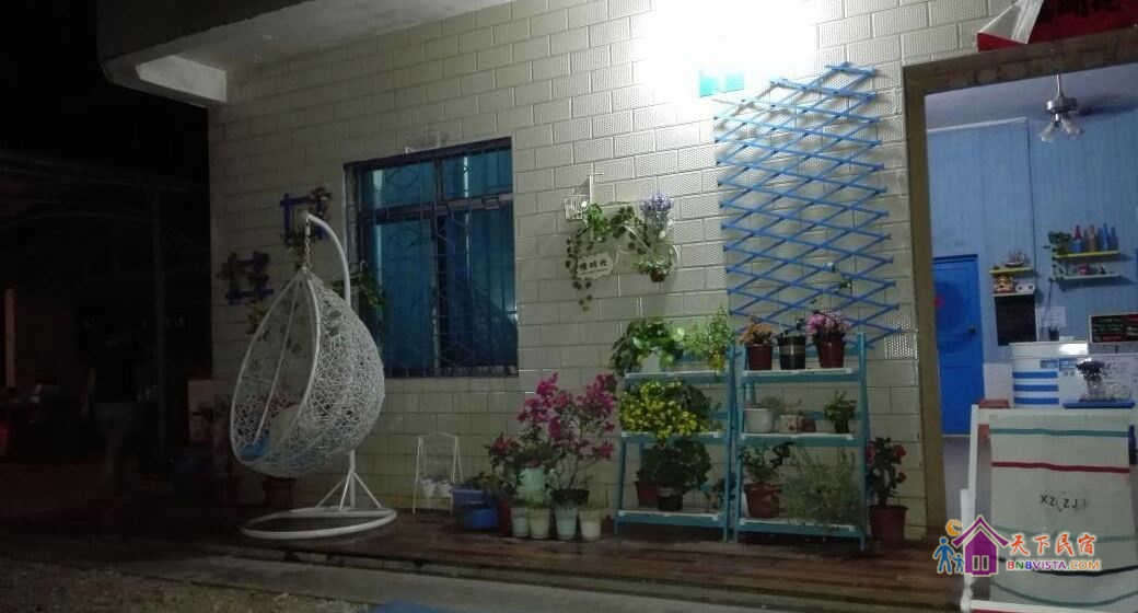 北海涠洲岛慢时光主题客栈拥有一个大院子,种满花草果树,并有一个小型的酒棚,客人可以晚上享受自助海鲜烧烤,并提供酒水服务,感受世外桃源般的惬意。