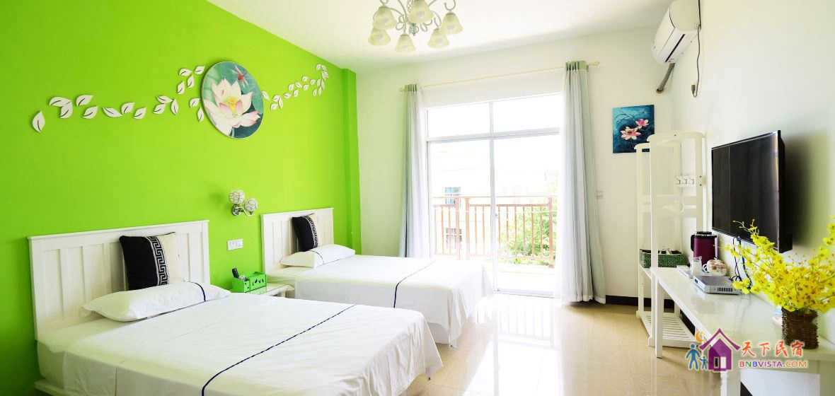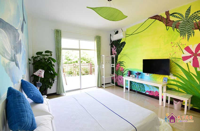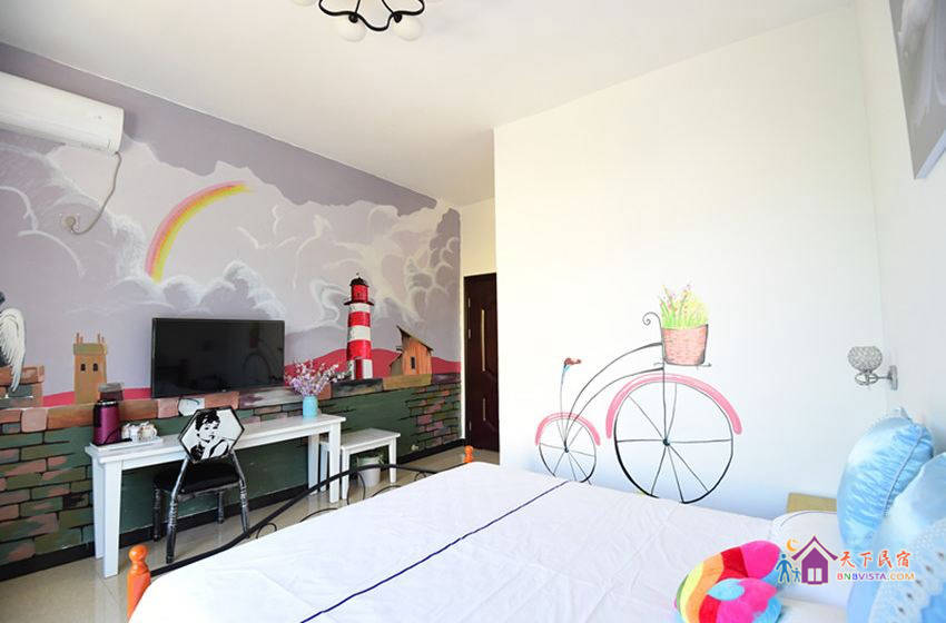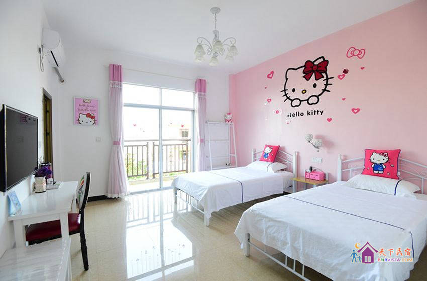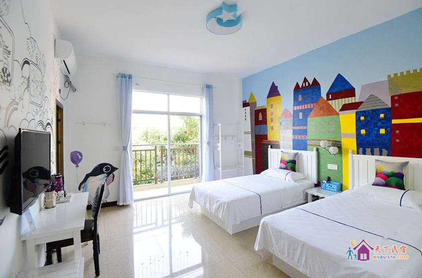 - 所有房型: 温馨海景双床房,倾城之恋彩绘大床房,紫色迷情大床房,花海田园双床间,海之蓝主题大床房,蓝色城堡彩绘主题房,粉色恋人大床房,花海田园大床房,kitt 猫主题房