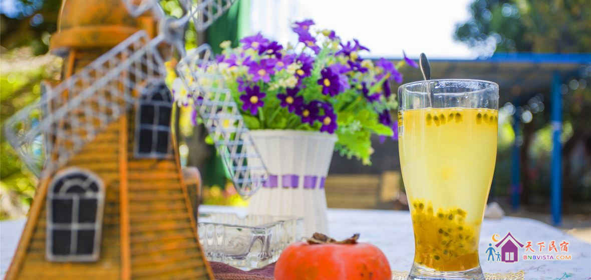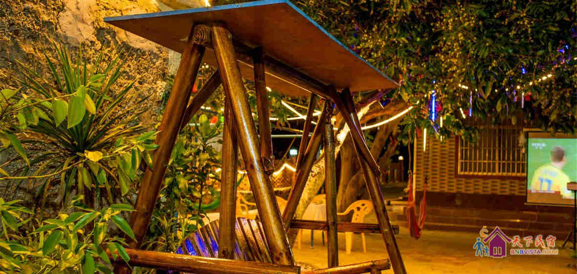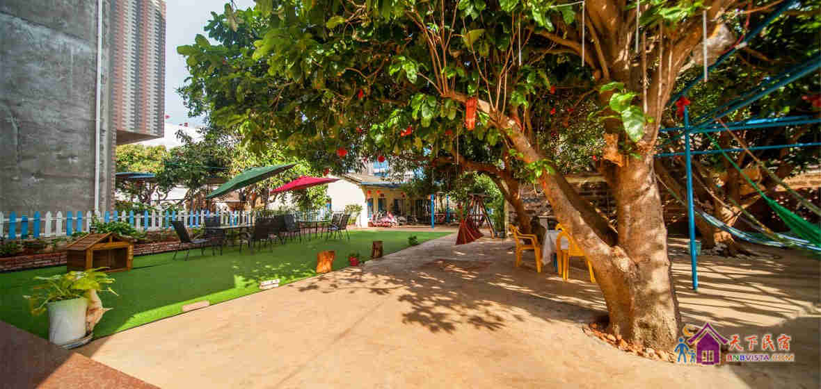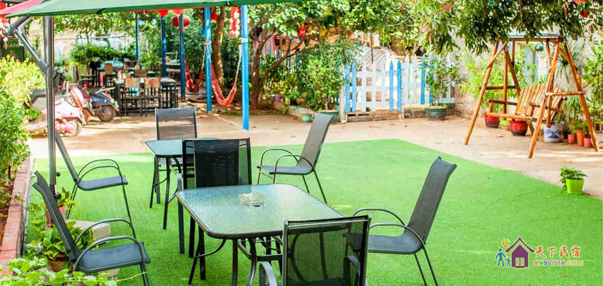客栈有独立餐厅供客人点餐(川菜,海鲜)、客人也可以自己去海鲜市场买菜回来客栈为您加工。你还可在私家菜园体验无公害农家蔬菜的丰收乐趣,累了就躺在大树下的吊床上品尝岛上的水果大餐。