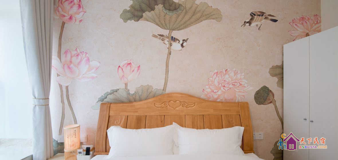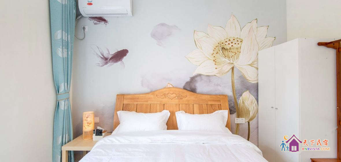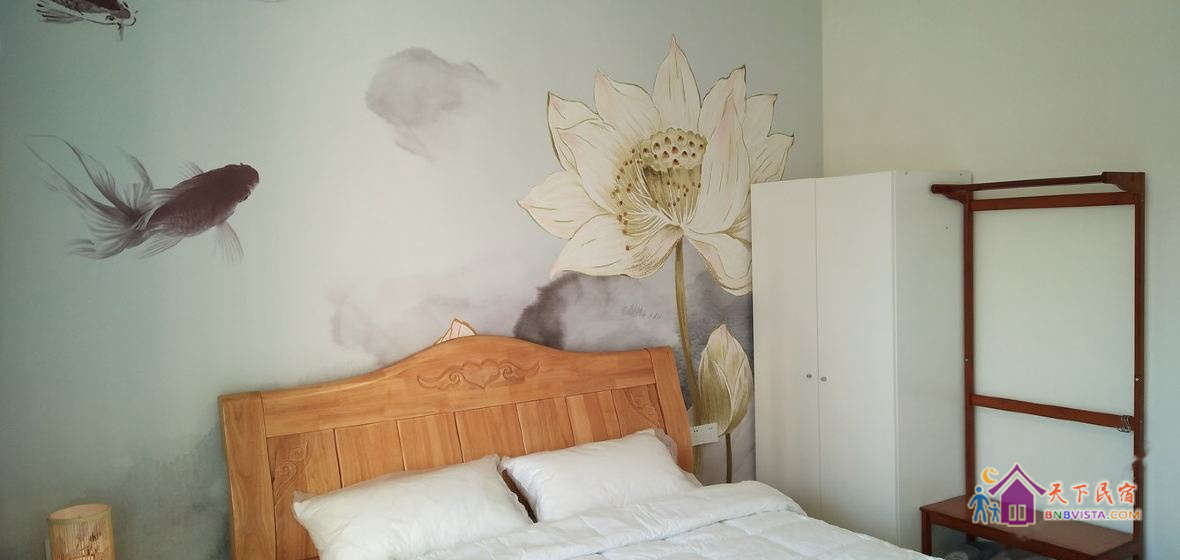 客栈备有三间精品客房,每间卧室的背景墙都是由店主私人定制的国画背景,客厅走廊墙面为敦煌壁画图案,公共区域桌椅均采用老榆木材质,呈现出古朴的氛围。所有的床均为实木橡木材质,床垫均为椰棕环保床垫,床品的品质与知名连锁酒店同等材质,洗漱用品与品牌酒店同款,掌柜的心愿是:让每一位顾客都可以住的放心,睡的安心,所有装修材料及家居等用品均选用环保材料,力求让每一位顾客都能安心入住。在玄关处设置了照片墙,可以把您的身影留下来,与大家一起分享您的旅游趣事。开放式厨房只可蒸煮,不可炒菜,海鲜就是要原味才好吃。