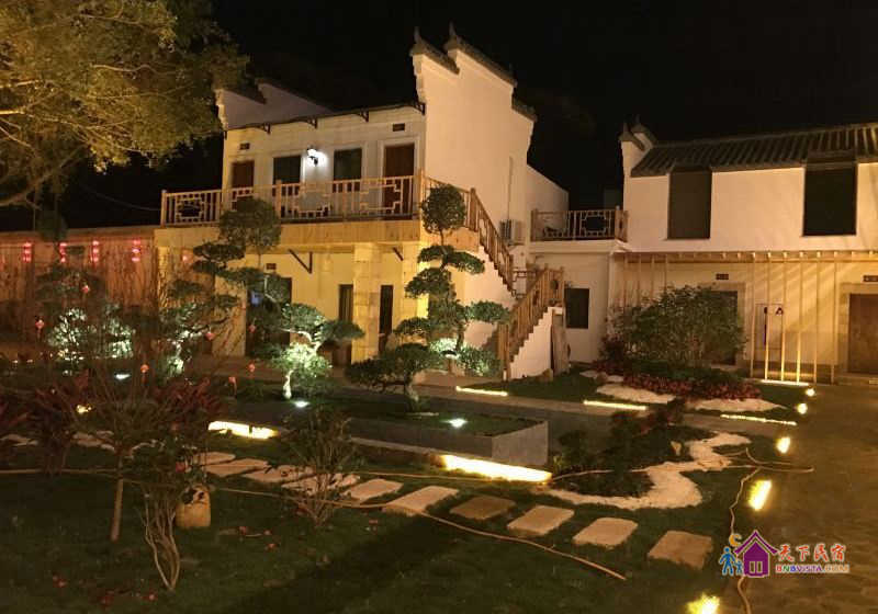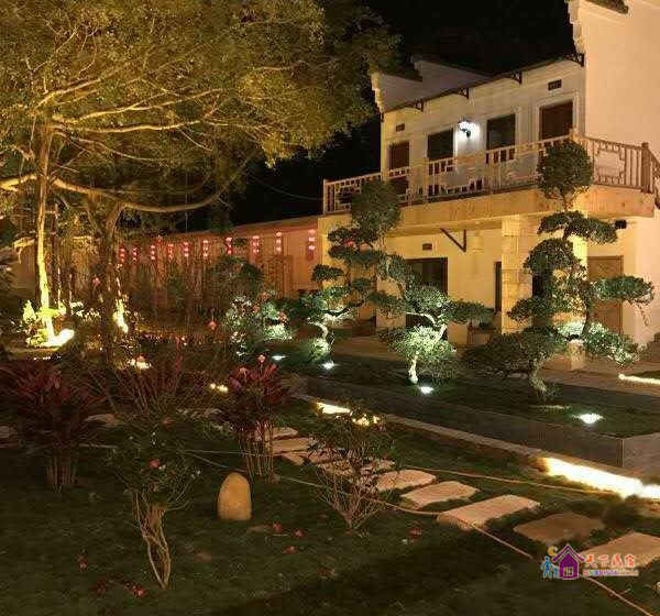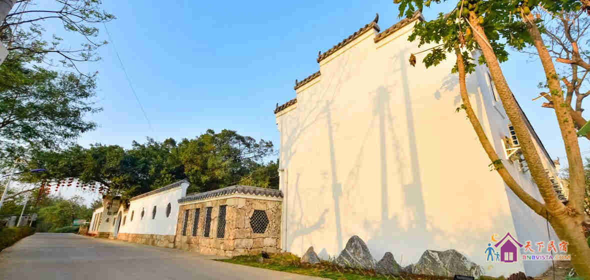 民宿酒店为占地近三亩园林景观四合院,建筑风格和设计理念:是以大海的粗犷与徽派细腻相融,以涠洲特有火山石与江南粉墙黛瓦文化相筑。整个建筑错落有致,静谧优雅。中庭水景庄重典雅,将树池与水景完美结合,打造出令人赏心悦目的视觉效果,强烈的轴线感衬托出建筑的贵族气质。