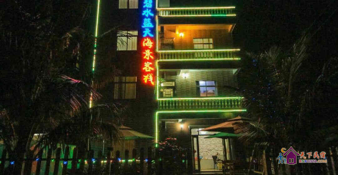 涠洲岛碧水蓝天海景客栈位于北海涠洲岛五彩滩景区,四层小洋房,2014年6月18号开业。一层为家庭房,二层为商务房,三、四层为田园海景房。所有房间WiFi覆盖,32寸网络电视,格力超强空调。步行至海边仅3分钟,在阳台上就可观赏每天的日出美景,退潮后可到海边抓鱼,抓螃蟹,并且超柔软的沙滩让游客留恋忘返!另酒店提供:住宿,餐饮,租车,赶海,潜水,票务等服务。