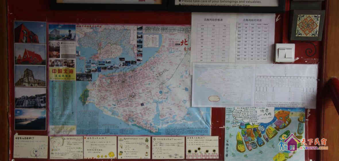旅舍附近就是北海国际客运码头,可以方便的去往著名的涠洲岛,门前公交出租车通往市中心北部湾广场及冠头岭、海洋之窗、红树林等景点。
