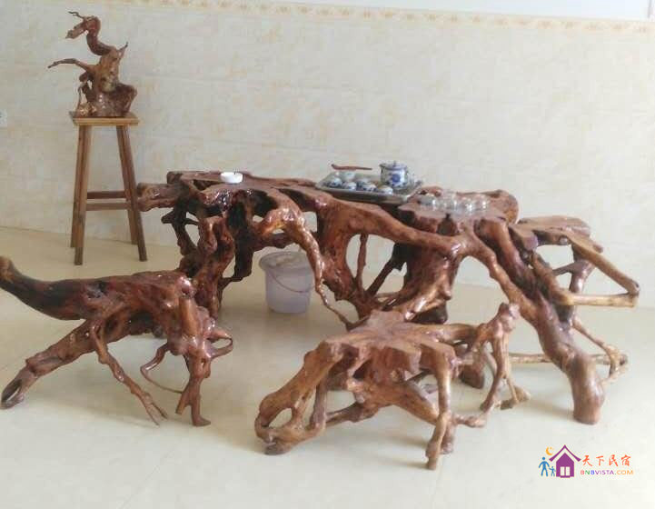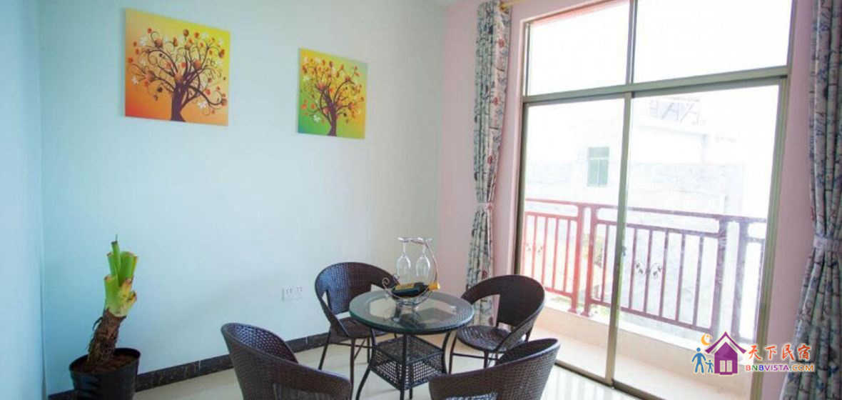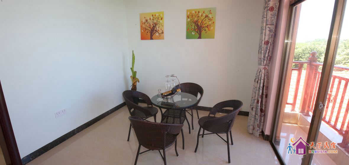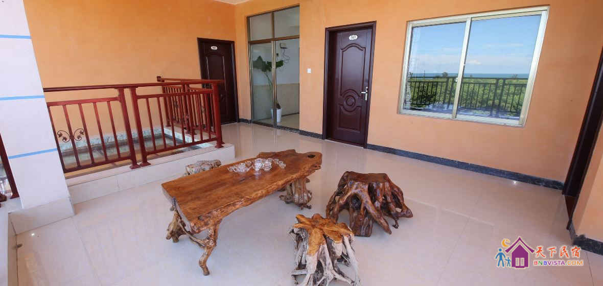 客栈每层的阳台上都有一个根雕艺术茶海可供客人悠闲之余品茗。二楼设有餐厅并提供海鲜加工。品尝完美味的海鲜,饭后还能坐在客栈的小花园,听着音乐时而吹过微微的海风,何尝不是另一种惬意的生活!