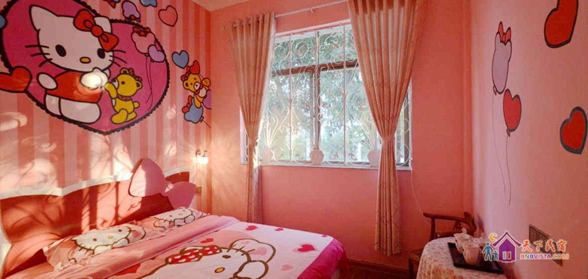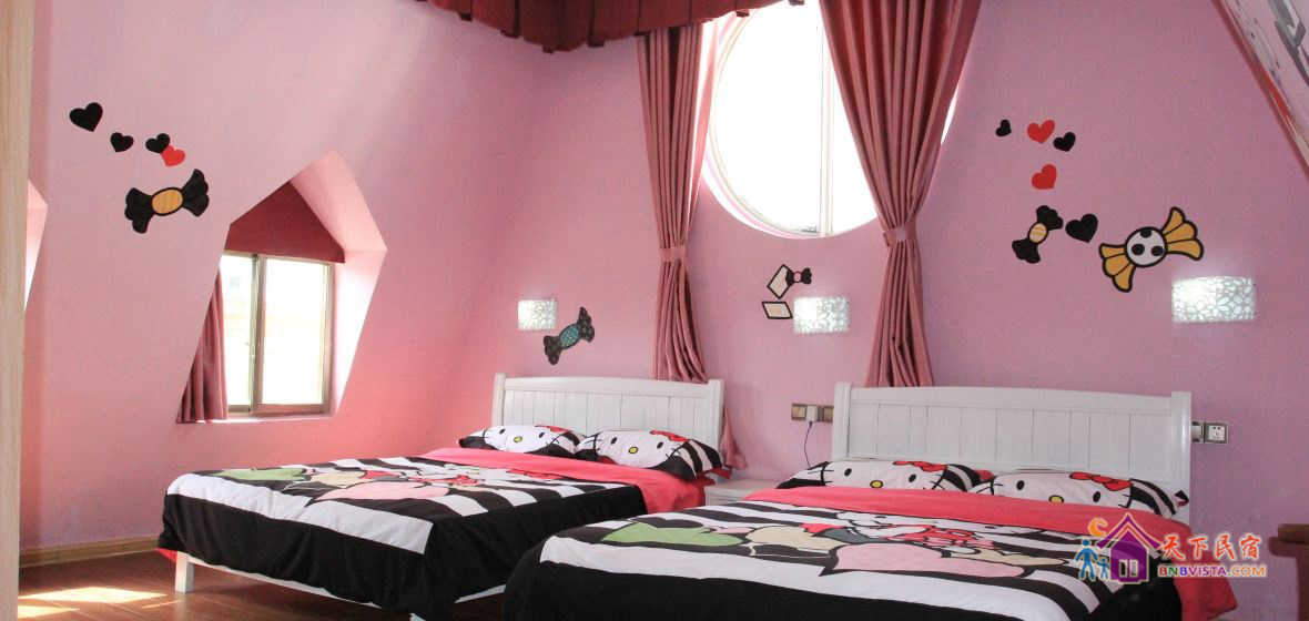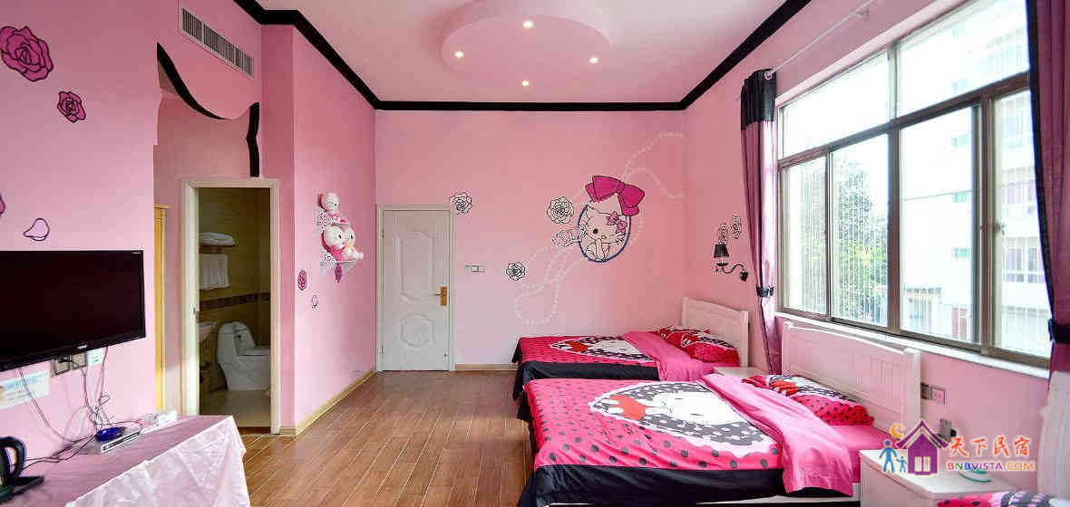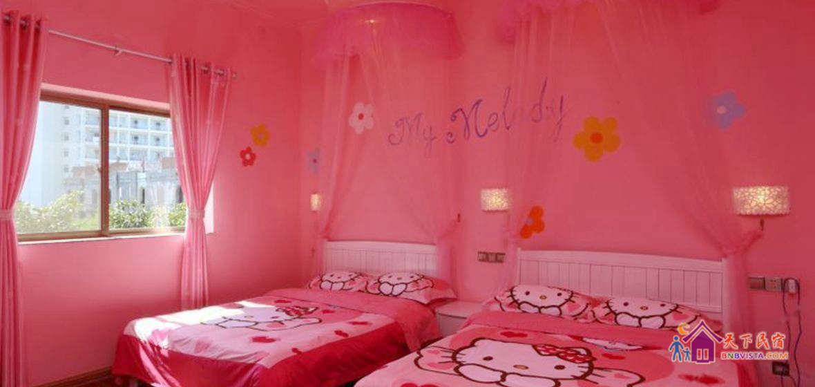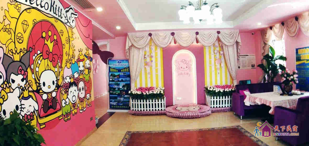 本客栈共有24间客房,每个房间都独具风格,房间里每一处布置都有Hello Kitty的身影,设计师出神入画的把Hello Kitty演绎出不同的身份,其中部分房间灵感来自于艾薇儿曾经为《Hello Kitty》在2013年11月5日发表的第五张录音专辑《Avril Lavigne》——艾薇儿音乐主题套房,马戏团主题三人房,超级可爱萌哒哒Hello Kitty粉色田园公主大床房、标房、三人房、套房,紫色梦幻女王系列的公主大床房、标房、三人房,专门为度蜜月的情侣、新婚、旅游度假的夫妻准备的天鹅恋大床房,温馨的居住环境,徒步五分钟就可以抵达国家4A级景区银滩,和恋人一起享受海水沙滩,本酒店专门为男士设计的Hello Kitty蓝色、绿色、灰色商务套房、三人房、标间,本酒店还在细节方面包括拖鞋、刷牙杯、茶杯等都换成了Hello Kitty品牌的,超级喜爱Hello Kitty的一定不要错过呦。”