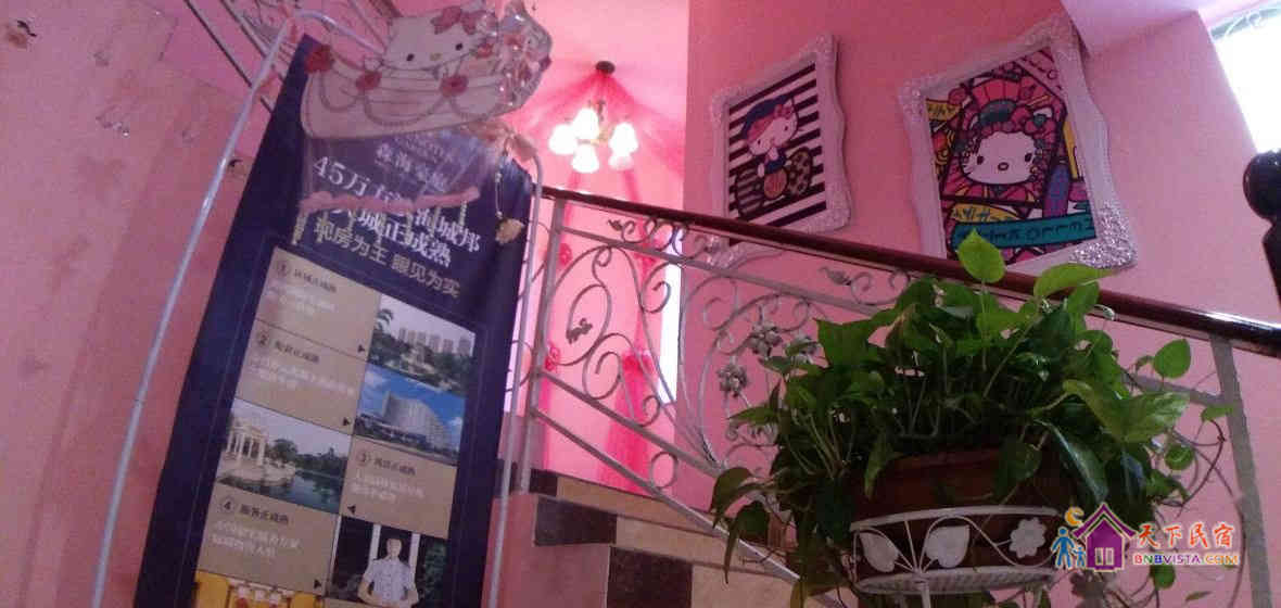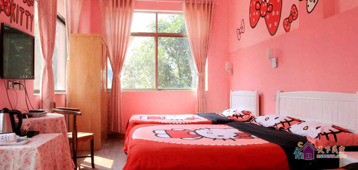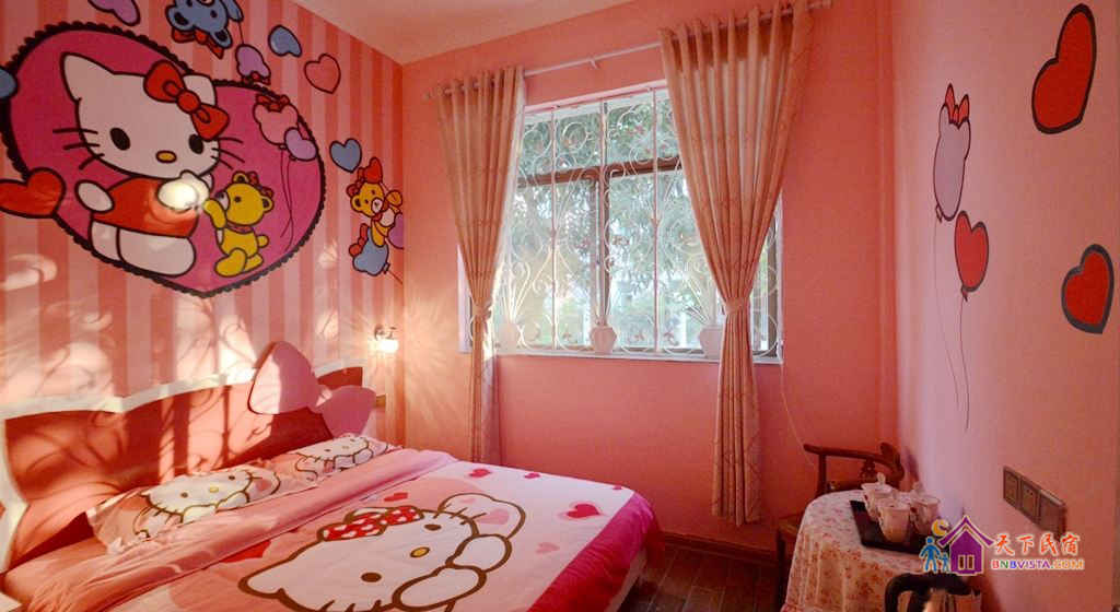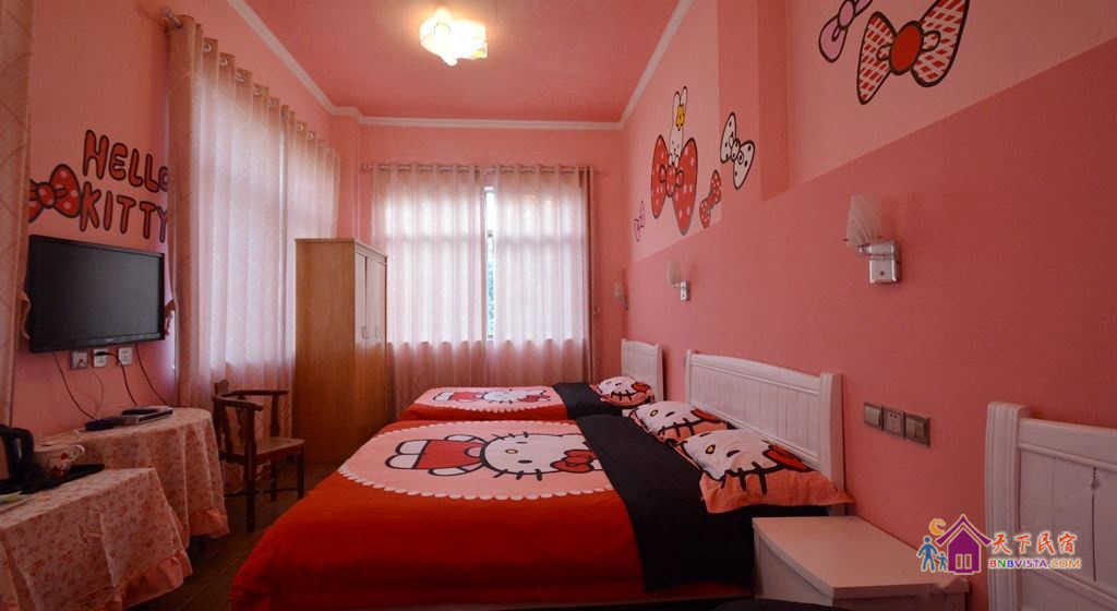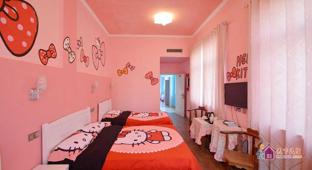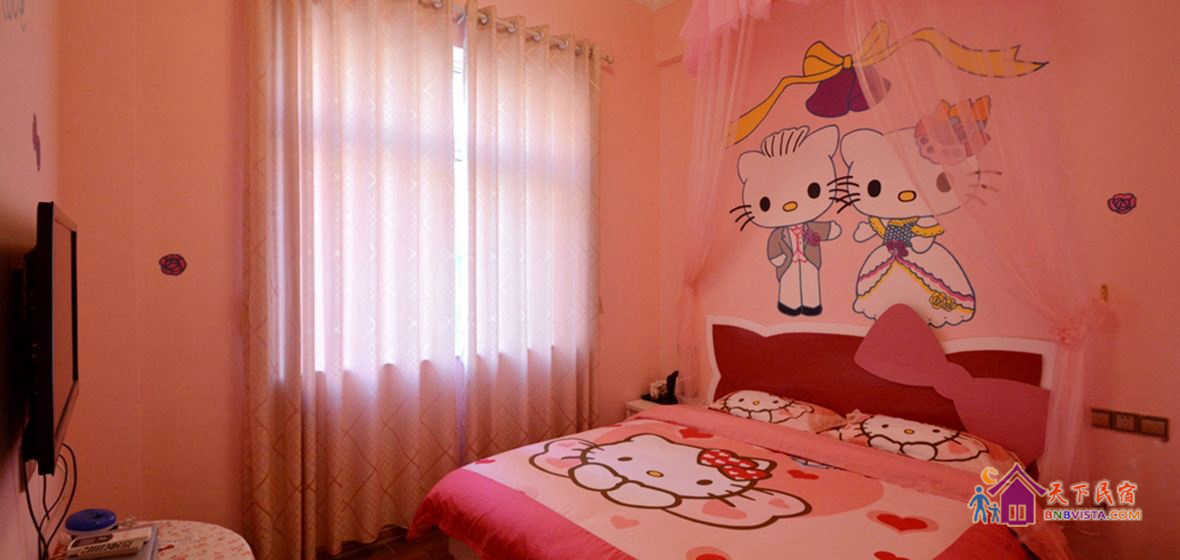 本客栈共有24间客房,每个房间都独具风格,房间里每一处布置都有Hello Kitty的身影,设计师出神入画的把Hello Kitty演绎出不同的身份,其中部分房间灵感来自于艾薇儿曾经为《Hello Kitty》在2013年11月5日发表的第五张录音专辑《Avril Lavigne》——艾薇儿音乐主题套房,马戏团主题三人房,超级可爱萌哒哒Hello Kitty粉色田园公主大床房、标房、三人房、套房,紫色梦幻女王系列的公主大床房、标房、三人房,专门为度蜜月的情侣、新婚、旅游度假的夫妻准备的天鹅恋大床房,温馨的居住环境,徒步五分钟就可以抵达国家4A级景区银滩,和恋人一起享受海水沙滩,本酒店专门为男士设计的Hello Kitty蓝色、绿色、灰色商务套房、三人房、标间,本酒店还在细节方面包括拖鞋、刷牙杯、茶杯等都换成了Hello Kitty品牌的,超级喜爱Hello Kitty的一定不要错过呦。”