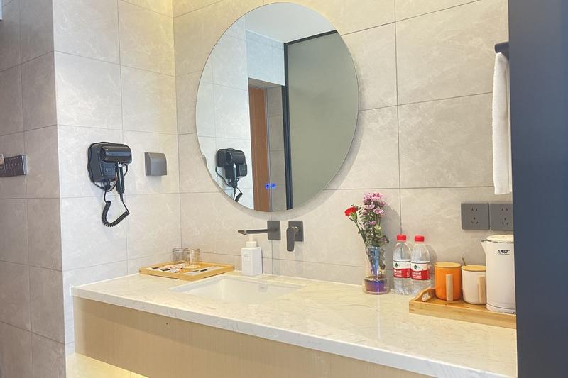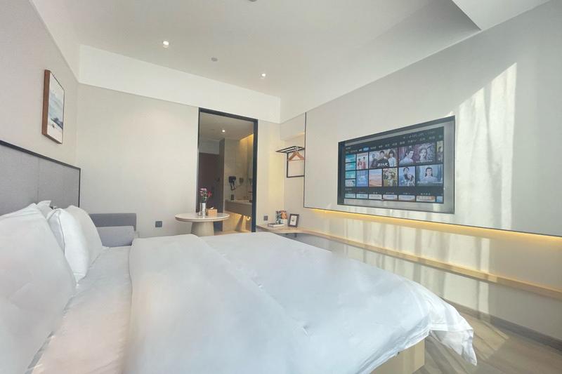 住在这,去哪都方便! 酒店地处成都核心地段,楼下即是2号线牛市口站C口,交通便利,出行方便,酒店毗邻春熙路太古里,九眼桥、坐拥环贸ICD、华润万象城、逛街shoping、餐饮、娱乐一应俱全,闹中取静,别具一格。距离成都东站3.8公里,约10分钟车程,双流国际机场17.3公里,约25分钟车程,众多景点,尽情玩赏。 在这里呈现的是居住、工作无边界的城市概念生活体验,这一切都是最棒的安排! 落地窗LOFT设计,无敌视野,卫生间干湿分区,房间配备大尺寸电视和百寸影音设备、感受智能家居全覆盖带来的科技便捷体验(自动开关灯,窗帘,空调,电视) 梦百合床垫、高档洗漱用品、洗衣机、冰箱、棋牌房、 严格的管理体系让您每-一次都能安心入住!