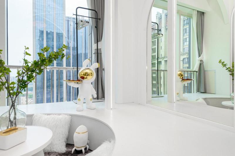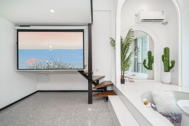房间:现代白色复式榻榻米大床房(带投影洗衣机)