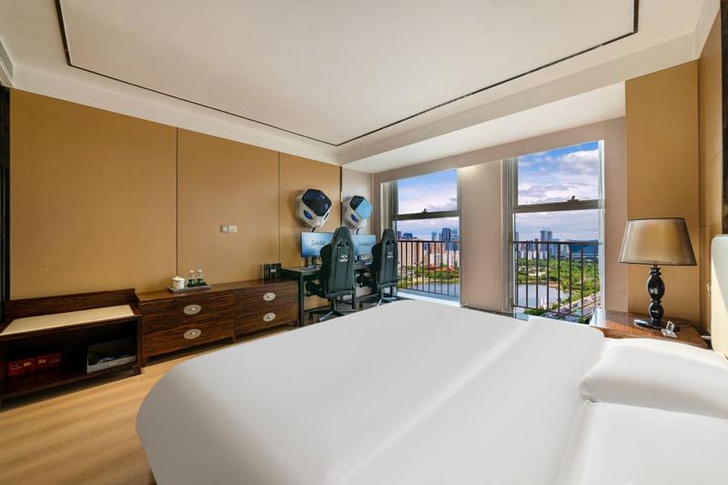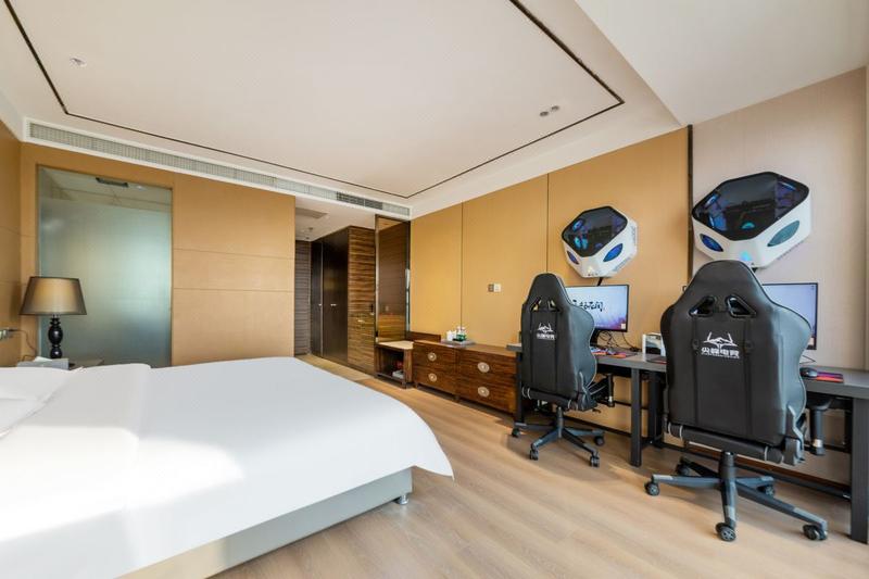酒店坐落于成都金牛万达广场SohoB座27层,地铁1号线/6号线人民北路站出站即可到达。本店地理位置优越,具有金牛万达广场和龙湖上城天街双商圈属性。周边毗邻春熙路、太古里、宽窄巷子、杜甫草堂、武侯祠、锦里、文殊院、339电视塔、成都动物园、熊猫基地;天府广场、欢乐谷、九眼桥、西南交通大学、电子科技大学;金牛万达商圈,龙湖上城天街商圈、春熙路商圈。交通娱乐美食极其便利,上述地点等成都网红打卡地,均可以乘坐地铁或公交等适当出行方式快速到达。让您全方位体验成都蓉城的多姿多彩。 酒店打造中高端酒店舒适的入住体验和年轻快乐健康的电竞文化,为电竞爱好者和商旅客户提供舒适睡眠体验的同时,畅想游戏乐趣。本店电脑配置3060和3090的系列显卡,高速万兆网络, HKC27寸+2K分辨率+240HZ刷新率电竞大直面屏显示器,统一上置机箱,专业罗技鼠标,专业级电竞椅,酒店配备星级水循环中央空调,让你住的舒适,玩的舒心,拥有不一样的电竞体验。 酒店配备多种房型,涵盖1人到3人间及各类套房、全景房等,可满足电竞宾客各种喜好。位于27层整层的高空览景客房,房间大部分选用落地窗,让您可一睹金牛万达及龙湖上城天街全景,且在游戏之余,还能透过窗外感受成都的市井气息与车水马龙。房间内配有冰箱以及各类饮料小零食,软硬舒适的床品以及高品质洗漱用品;酒店位于金牛万达广场及龙湖上城天街双商圈,楼下即是人民北路地铁站,周边娱乐,商场等配套一应俱全。酒店房间明亮舒适,为您提供细致而温馨的24小时管家式服务,还可贴心暖心的为您免费洗衣,为您出行提供舒心和便利,让您在竞技娱乐同时感受宾至如归的服务体验。