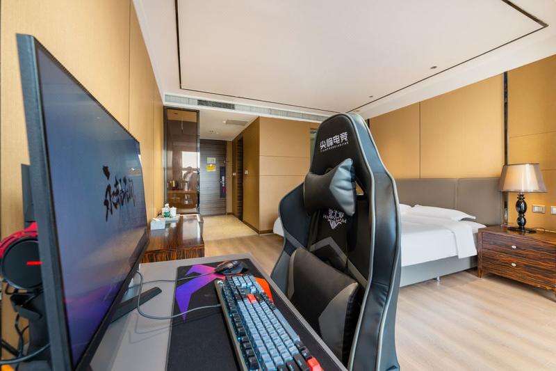 酒店坐落于成都金牛万达广场SohoB座27层,地铁1号线/6号线人民北路站出站即可到达。本店地理位置优越,具有金牛万达广场和龙湖上城天街双商圈属性。周边毗邻春熙路、太古里、宽窄巷子、杜甫草堂、武侯祠、锦里、文殊院、339电视塔、成都动物园、熊猫基地;天府广场、欢乐谷、九眼桥、西南交通大学、电子科技大学;金牛万达商圈,龙湖上城天街商圈、春熙路商圈。交通娱乐美食极其便利,上述地点等成都网红打卡地,均可以乘坐地铁或公交等适当出行方式快速到达。让您全方位体验成都蓉城的多姿多彩。 酒店打造中高端酒店舒适的入住体验和年轻快乐健康的电竞文化,为电竞爱好者和商旅客户提供舒适睡眠体验的同时,畅想游戏乐趣。本店电脑配置3060和3090的系列显卡,高速万兆网络, HKC27寸+2K分辨率+240HZ刷新率电竞大直面屏显示器,统一上置机箱,专业罗技鼠标,专业级电竞椅,酒店配备星级水循环中央空调,让你住的舒适,玩的舒心,拥有不一样的电竞体验。 酒店配备多种房型,涵盖1人到3人间及各类套房、全景房等,可满足电竞宾客各种喜好。位于27层整层的高空览景客房,房间大部分选用落地窗,让您可一睹金牛万达及龙湖上城天街全景,且在游戏之余,还能透过窗外感受成都的市井气息与车水马龙。房间内配有冰箱以及各类饮料小零食,软硬舒适的床品以及高品质洗漱用品;酒店位于金牛万达广场及龙湖上城天街双商圈,楼下即是人民北路地铁站,周边娱乐,商场等配套一应俱全。酒店房间明亮舒适,为您提供细致而温馨的24小时管家式服务,还可贴心暖心的为您免费洗衣,为您出行提供舒心和便利,让您在竞技娱乐同时感受宾至如归的服务体验。