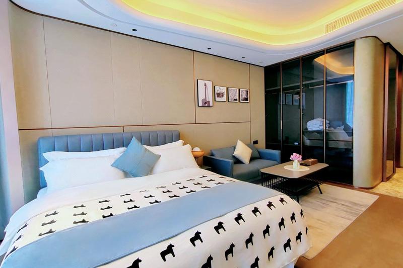 位于成都金融城核心地带天府二街,近金融城、环球中心、世纪城新会展中心,商场、商务区、交通枢纽都汇集在此处,是商务出差和旅游出行的优选。内设有24小时免费停车位,为您畅快的自驾提供便利。我们有商务大床房和套房两种房型。180°-270°玻璃幕墙可观赏桂溪生态公园、环球中心、天鹅湖公园湖景。室内提供高端配套设施:全屋智控、中央空调、高速免费的无线Wi-Fi、高清液晶电视、洗烘一体全自动滚筒洗衣机、整体厨卫、智能马桶、免费MiniBar等。入住期间全程提供管家式服务,让您感到宾至如归,为您带来“诗意的旅居生活”体验。
