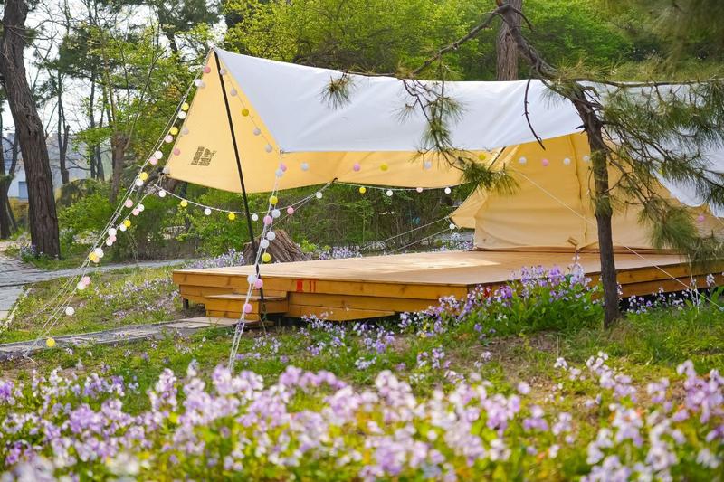 营地位于老龙头路,豪华帐篷在树林中分布,左依长城之首老龙头,南临大海,北靠城墙,晨观龙头日出,夜拍长城星轨,与涛声同眠,伴蝉鸣鸟唱,幽静中万物相安,让心与长城大海对话。 在长城之首安榻,面朝大海。 家庭式设计:独立的天幕和帐篷,私密且安逸,约20㎡舒适空间,打破您对陌生环境的不适应感,让您及亲朋好友感受到家的温暖。 全家动起来:在长城入海处看日出、在老龙头上拍星轨、林外挥汗如雨,营地凉风习习,既可以游览5A景区,又能体验各种娱乐项目,读书、刷剧、发呆,深睡,让我们一起欢度两天“懒人”的快乐时光 多元化服务:野奢帐篷区、户外美学区、自助野炊区、沙滩玩乐区、公共天幕区、24小时热水和不定时互动游戏,让你体验真正的休闲放松。 野奢风露营:有别于传统户外露营,这是一种全新的Glamping——“轻奢野外露营”,让我们在郊外享受“漫”时光的同时拍出令朋友圈“尖叫”的露营照片。 营地特色:星空下聚会:夜晚我们篝火晚会,露天电影,看星空,八卦阵内去寻宝。