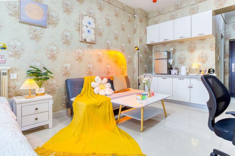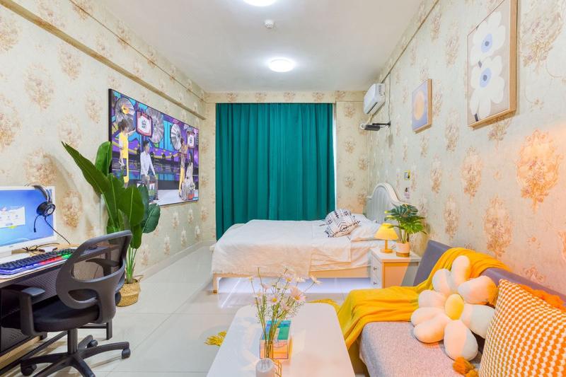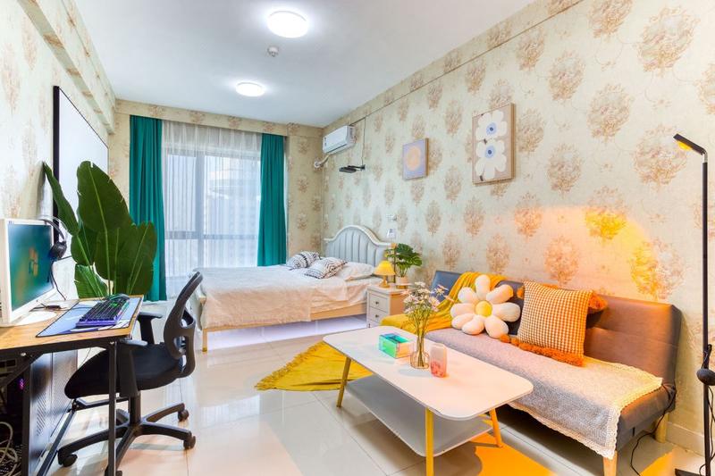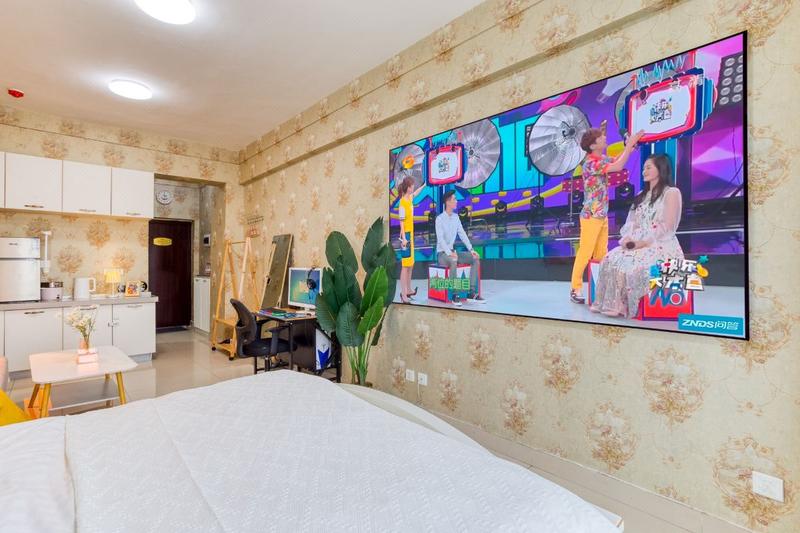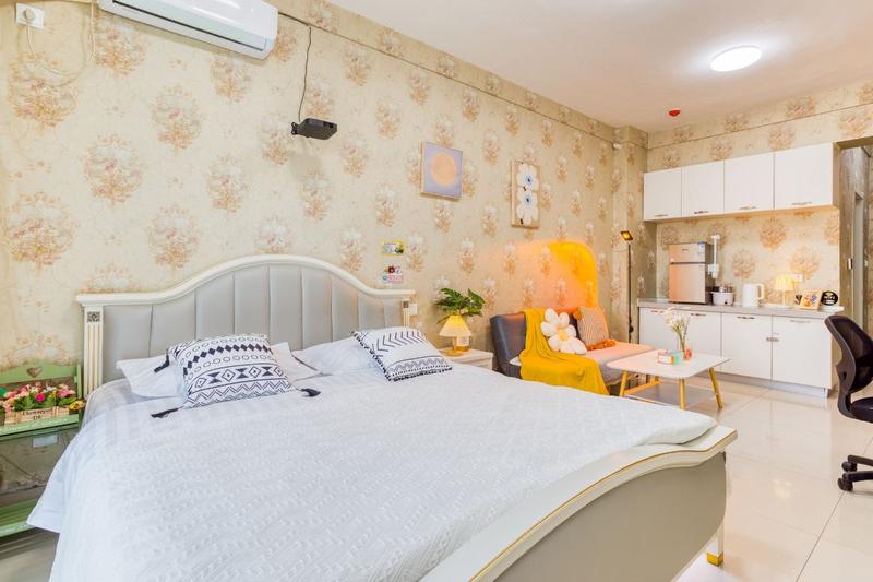 北欧ins品质一居室(110寸超清巨幕投影+地暖+高层夜景小米小爱音箱/27寸电脑/智能锁/超白衣镜/落日灯)