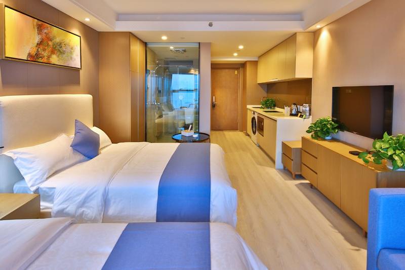 石老人浴场、青岛国际会展中心、青岛博物馆、啤酒城广场等犹如一颗颗璀璨的明珠围绕在酒店的周围。紧邻地铁2号线和11号线苗岭路站,地理位置上佳。毗邻青银高速,交通便捷,是商务及休闲旅游人士的优选下榻之所。拥有精心布置的轻奢房间,海景房更是让整个石老人海水浴场尽收眼底,酒店装修以轻奢精致、时尚典雅为特色,配备微波炉、电磁炉、冰箱、洗衣机等现代化服务设施,可为宾客提供高水准的住宿环境和配套设施,酒店让生活更美好,在此尽享酒店带给您的尊贵和轻松体验。