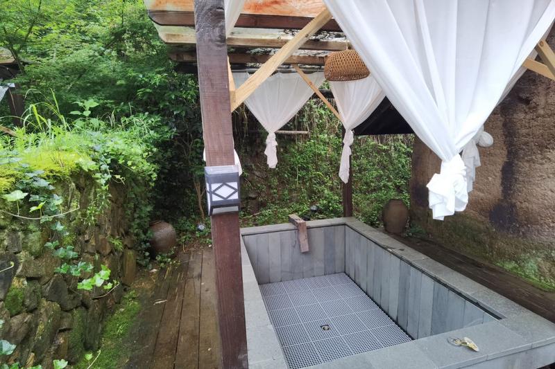 山韵泉居温泉唐宿此处是非常具有历史价值和美学研究的古村落,其位于温州泰顺雅阳温泉镇,泥墙黑瓦、采用榫卯巧构、主体结构不用一颗钉子,虽算不上精美堂皇,但也错落有致,加之山环水秀,地盘宽阔,实有小美。门窗结合日式推门和落地玻璃大大增加光线的自由出入,温泉房皆配有独立汤屋或汤桶。庭园房有一处日式小院子,可以喝茶聊天或观景泡汤。民宿更配置了儿童游玩区,棋牌室,会议室,餐厅,烧烤区,露天电影,篝火区,茶室,团建活动区等,开窗见景,开窗闻花香是我们民宿主人独特情怀,院子内不同季节都有各种花香。
