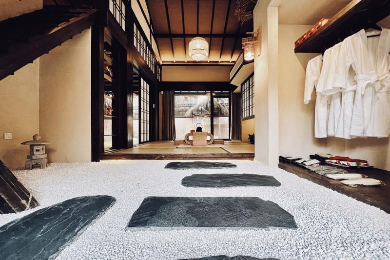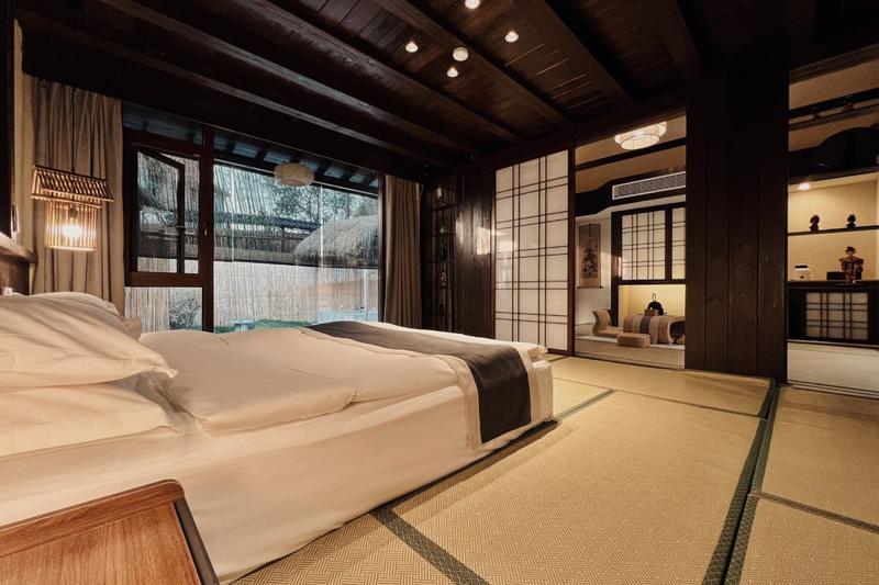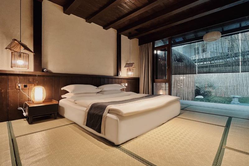 一屋一院一汤池。泡在雾气缭绕的汤池里,烫上一壶上好的清酒,看漫天的雪花在空中飞舞,这似乎才是正确的过冬方式。 民宿总共可住18位,不仅有优质的天然温泉,内部装修也同样考究。全屋木制结构,配合和式吊灯、千本格子和舒适柔软的榻榻米草席。 温泉富含多种天然矿物质,对舒缓肌肉、神经、关节,缓解疲惫都有非常不错的效果。适合各类家庭聚会,公司团建,放松休闲。