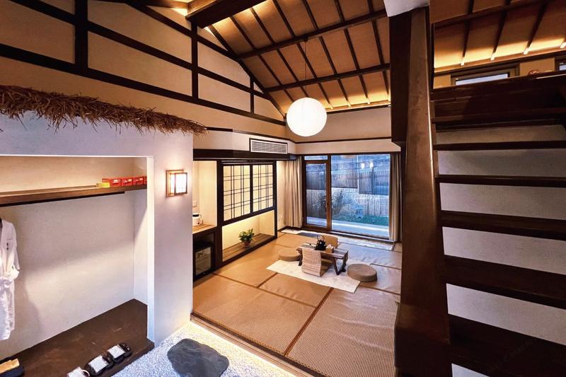 一屋一院一汤池。泡在雾气缭绕的汤池里,烫上一壶上好的清酒,看漫天的雪花在空中飞舞,这似乎才是正确的过冬方式。 民宿总共可住18位,不仅有优质的天然温泉,内部装修也同样考究。全屋木制结构,配合和式吊灯、千本格子和舒适柔软的榻榻米草席。 温泉富含多种天然矿物质,对舒缓肌肉、神经、关节,缓解疲惫都有非常不错的效果。适合各类家庭聚会,公司团建,放松休闲。