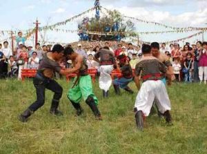 蒙古族的盛大会。“那达慕”意思是“娱乐”和“游戏”。通常须看当年的牧业生产情况,一般是小丰收小开,