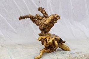 沭阳县根雕艺术县级非物质文化遗产传承人徐以兵作品巧妙运用材质的美感、动作飘逸、气势磅礴,而且善于发挥各种材质的特性,经过细心的揣摩,让心灵与自然对话,从而激发出创作灵感和思维火花,不仅具有很强的形象感,且继承了中国传统雕刻的精髓.创造出一种与自然浑然一体的艺术境界,并通过作品与观赏者的心灵上沟通与之产生共鸣。